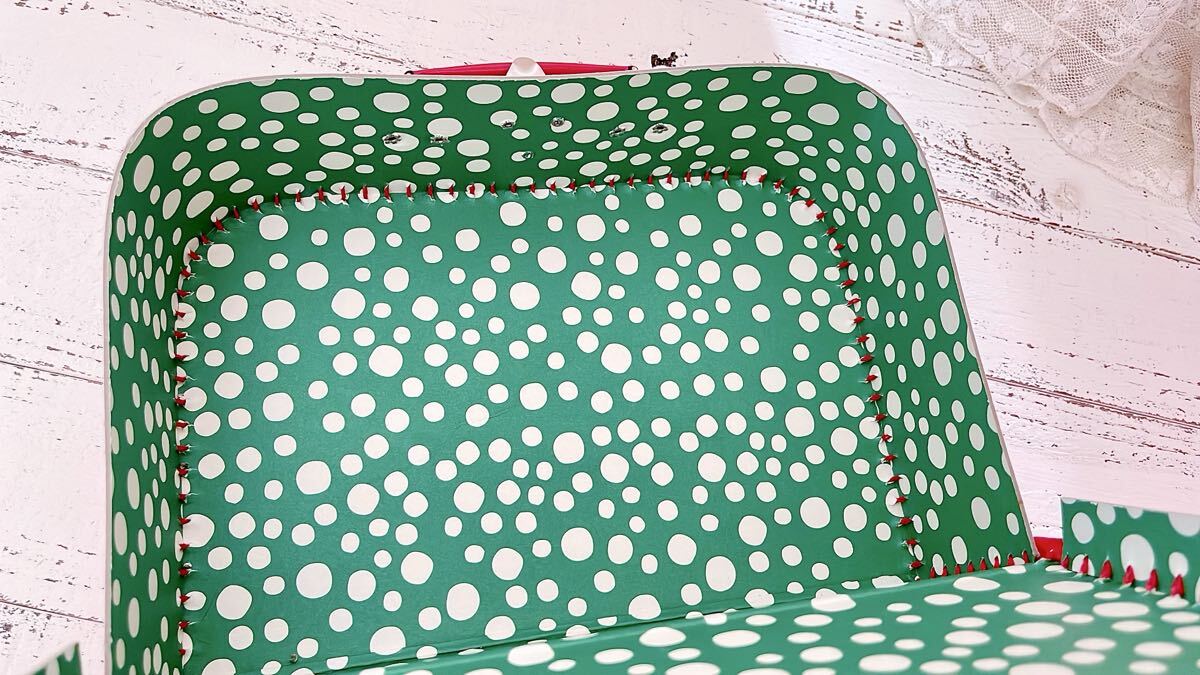 鮮やかな色合いとねこちゃんのイラストがとても可愛いく、つくりもしっかりとしたトランクです♪
