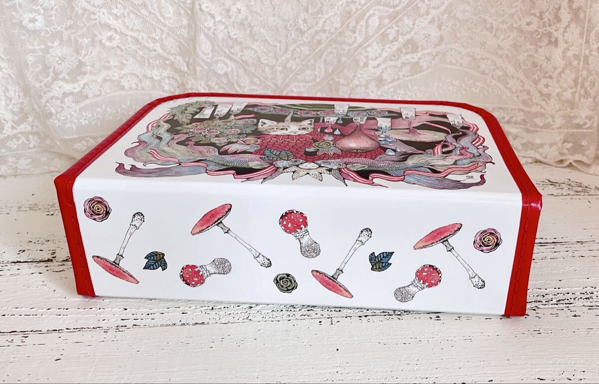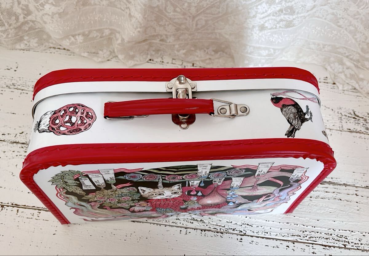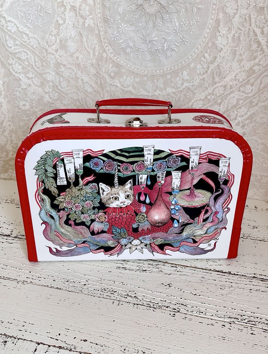 ヒグチユウコさんとホルベインのコラボで販売されていたペーパートランクの出品になります。ほとんど使用していないキレイなお品ものになりますが、一度人手に渡りました中古品ということでご理解お願いいたします。サイズは横30cm×奥行き21cm×厚み9cmほどになります。トランクの絵柄は表裏両面に入っていて、どちらも同じ絵柄(画像1枚目)になります。