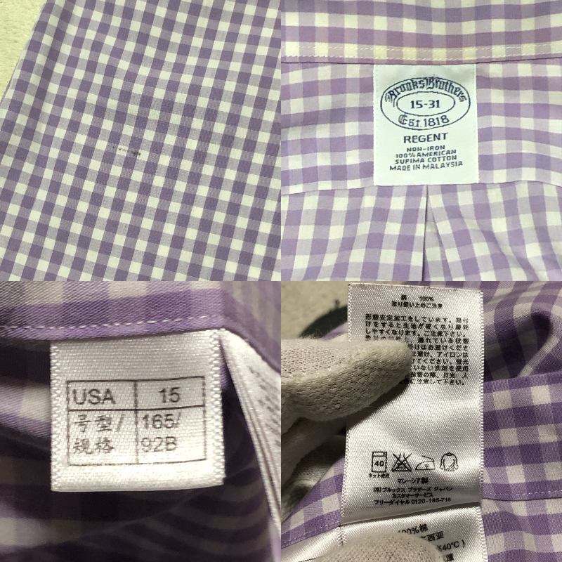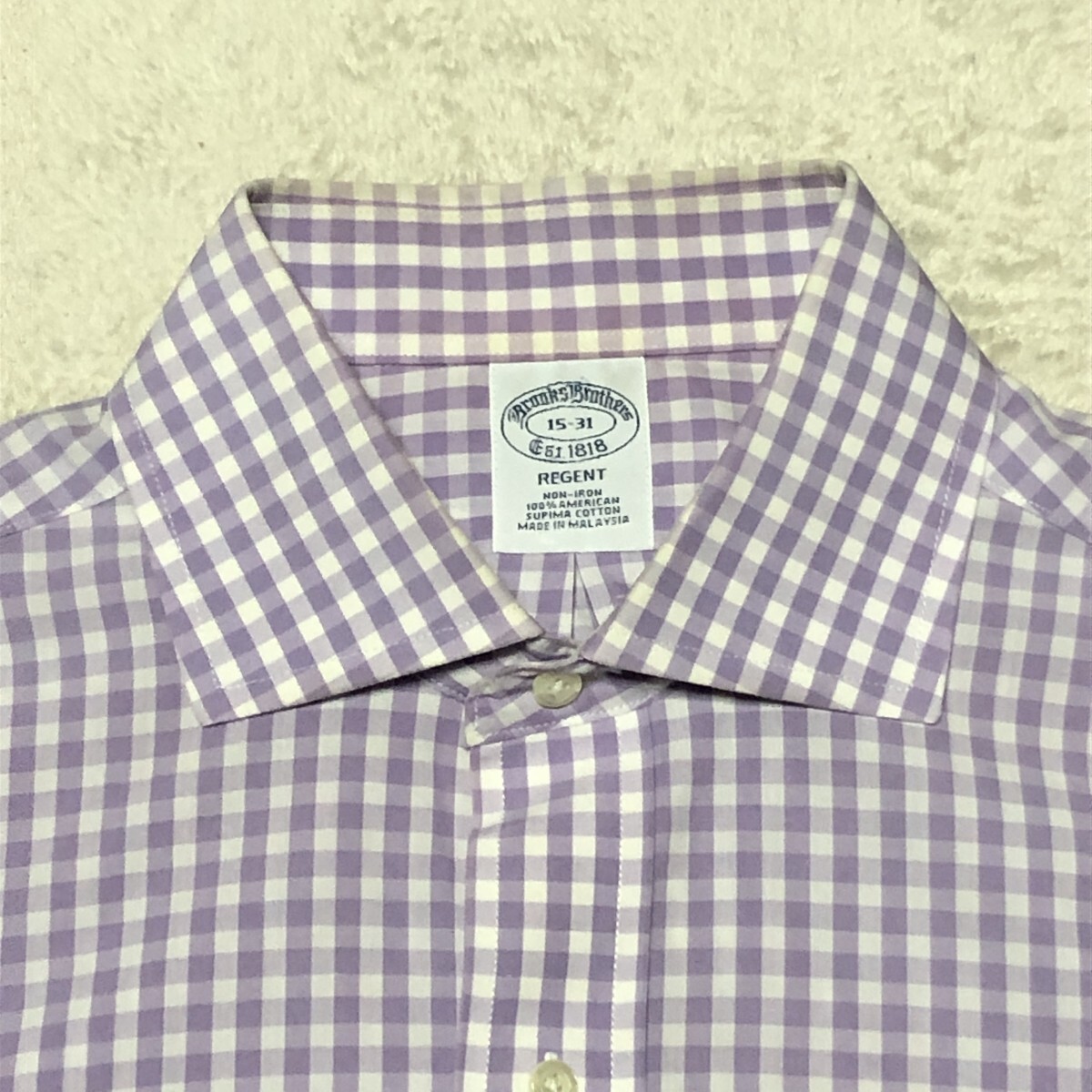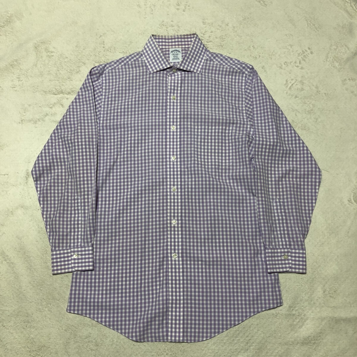 ブルックスブラザーズ BROOKS BROTHERS 長袖シャツ チェック柄 パープル系 人気の大きいサイズ 15-31サイズ XLサイズ相当