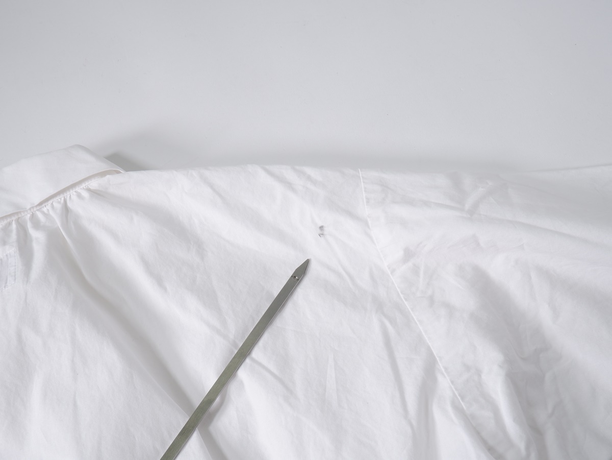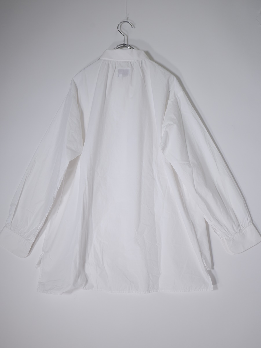 【素材感】ややハリ感のあるシャツ生地 【透け感】あり 【裏地】なし 【ストレッチ】なし 【開閉デザイン】ボタン 【付属品(取り外し可)】なし 【商品情報】フランス製 ワイドシルエットブラウス。 |
