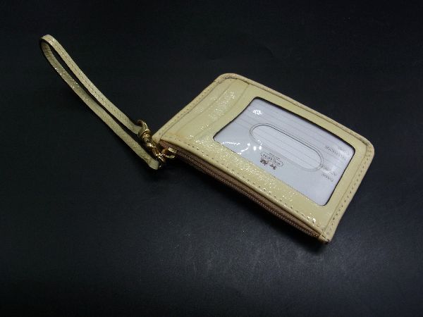 ■美品■ COACH コーチ ミニシグネチャー キャンバス×パテントレザー パスケース 定期入れ カードケース ブラウン系 DG7863