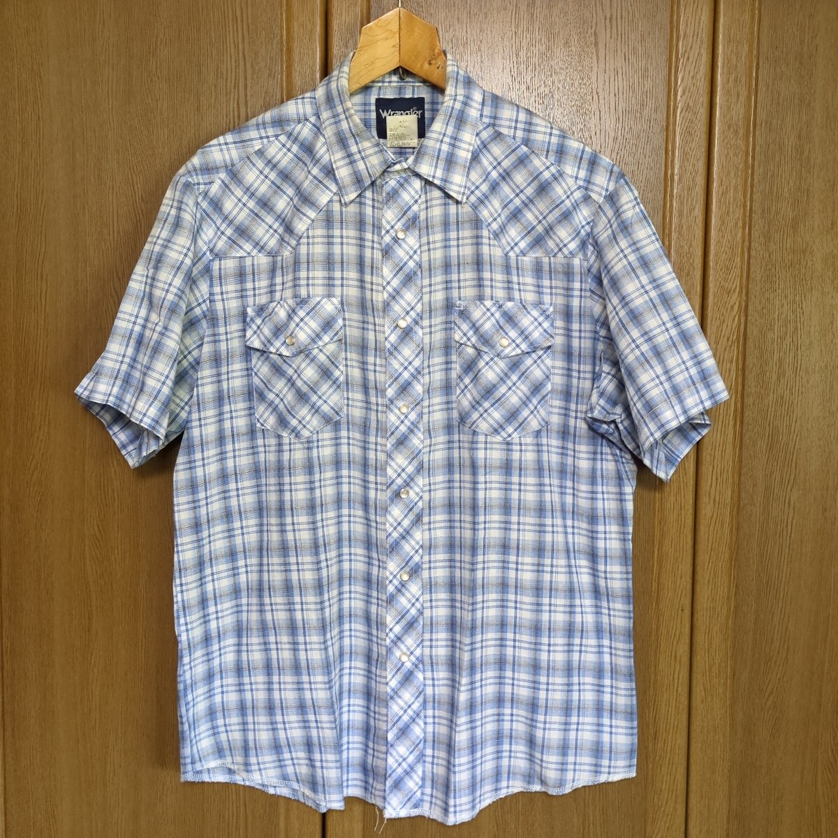 USA古着 Wrangler ラングラー 青 ブルー チェック ウエスタンシャツ 半袖 L チェックシャツ ウエスタン シャツ アメカジ ( ロカビリー