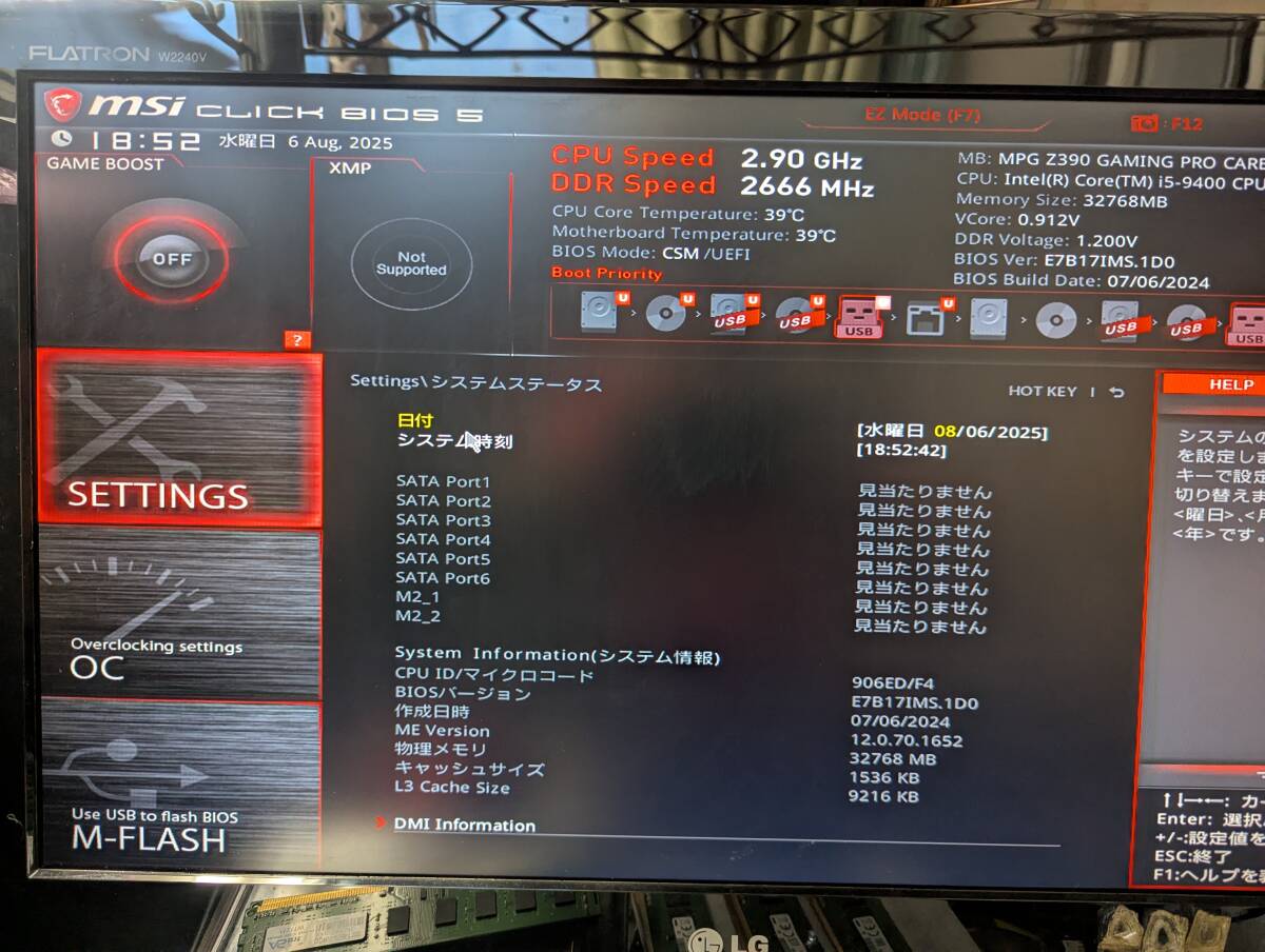 | 簡易チェック済み マザーボード MSI MPG Z390 GAMING PRO CARBON LGA1151 BIOS更新済み | |