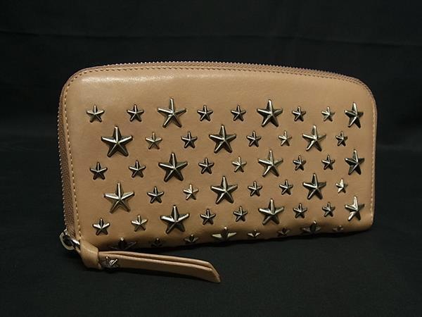 1円 JIMMY CHOO ジミーチュウ フィリパ レザー スタースタッズ ラウンドファスナー 長財布 ウォレット レディース ブラウン系 BP3921