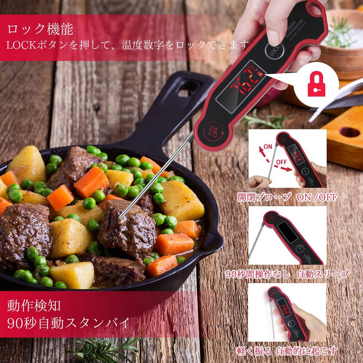 コンパクト 料理温度計 熱電対 超速読2-3s 高精度±0.5℃ 防水IPX6