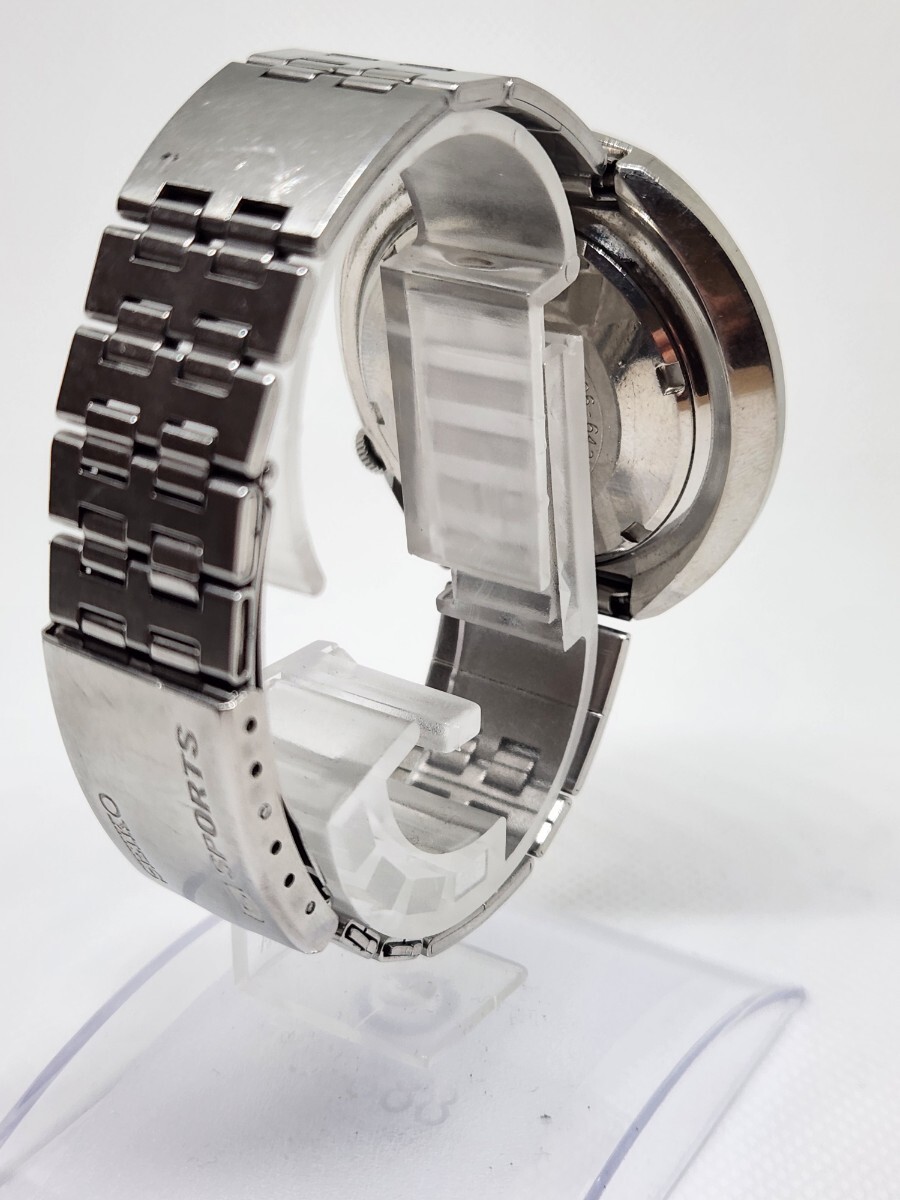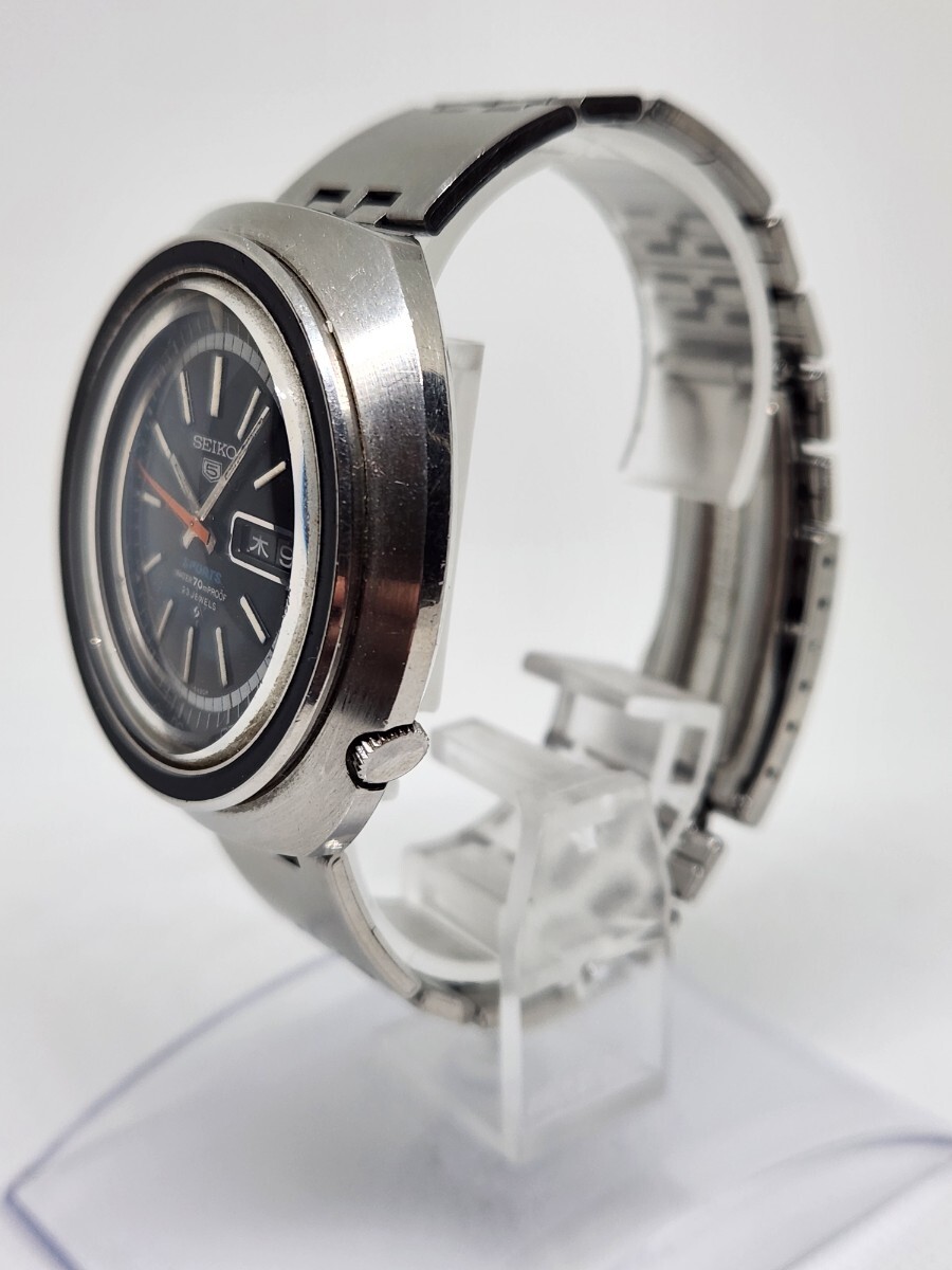 1970年代5スポーツビックラウンドケースデイデイトです。SPORTSの青色、秒針の赤色も鮮明に残っています。
