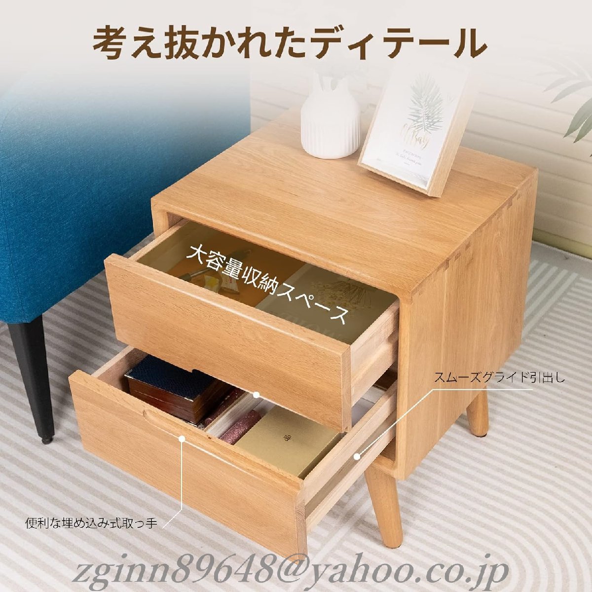 【高品質の素材】高品質のホワイトオークを採用しており、強度と耐久性に優れ、耐荷重性も高いナイトテーブル。テーブル表面が傷や汚れがつきにくいし、水などこぼしてもさっと拭くだけ、お手入れ簡単です。背面パネルはスプライスではなく、無垢材を丸ごと使用しており、より頑丈で、耐久性に優れるナイトテーブル。
