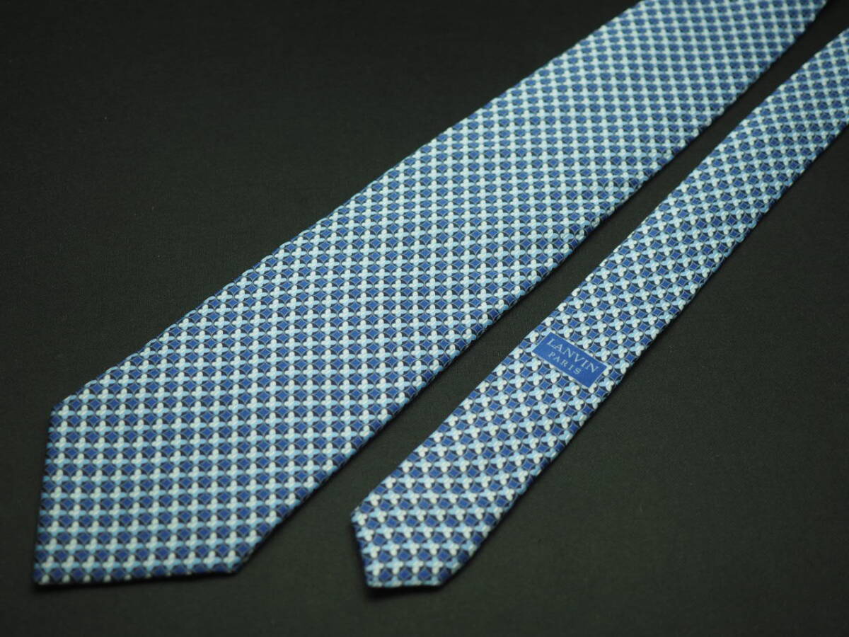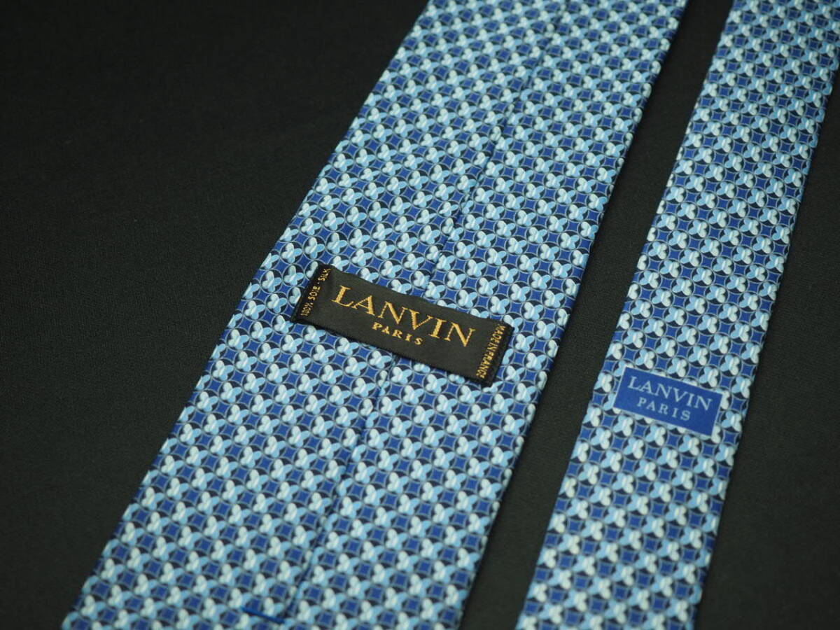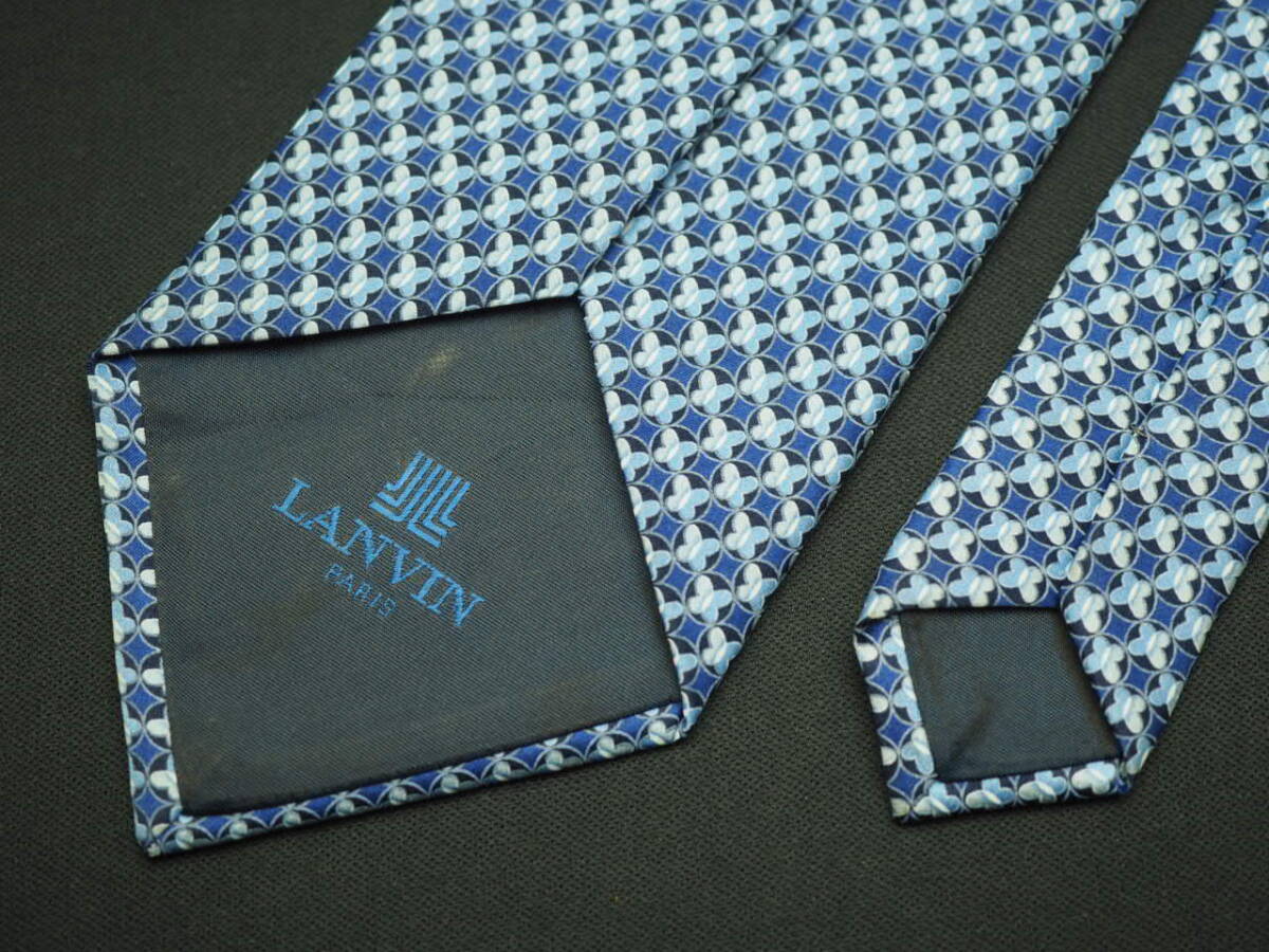 美品【LANVIN ランバン】 F1455 ブルーネイビー系 SILK ブランド ネクタイ 古着 良品