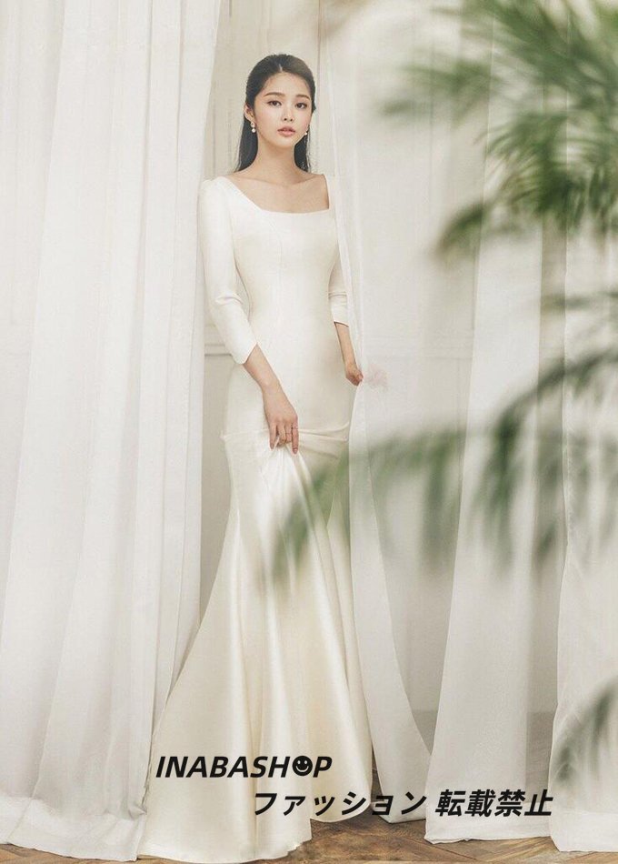 ウェディングドレス 袖あり マーメイドドレス 長袖 トレーン ウェディング ウエディング ドレス ウエディングドレス 披露宴 結婚式