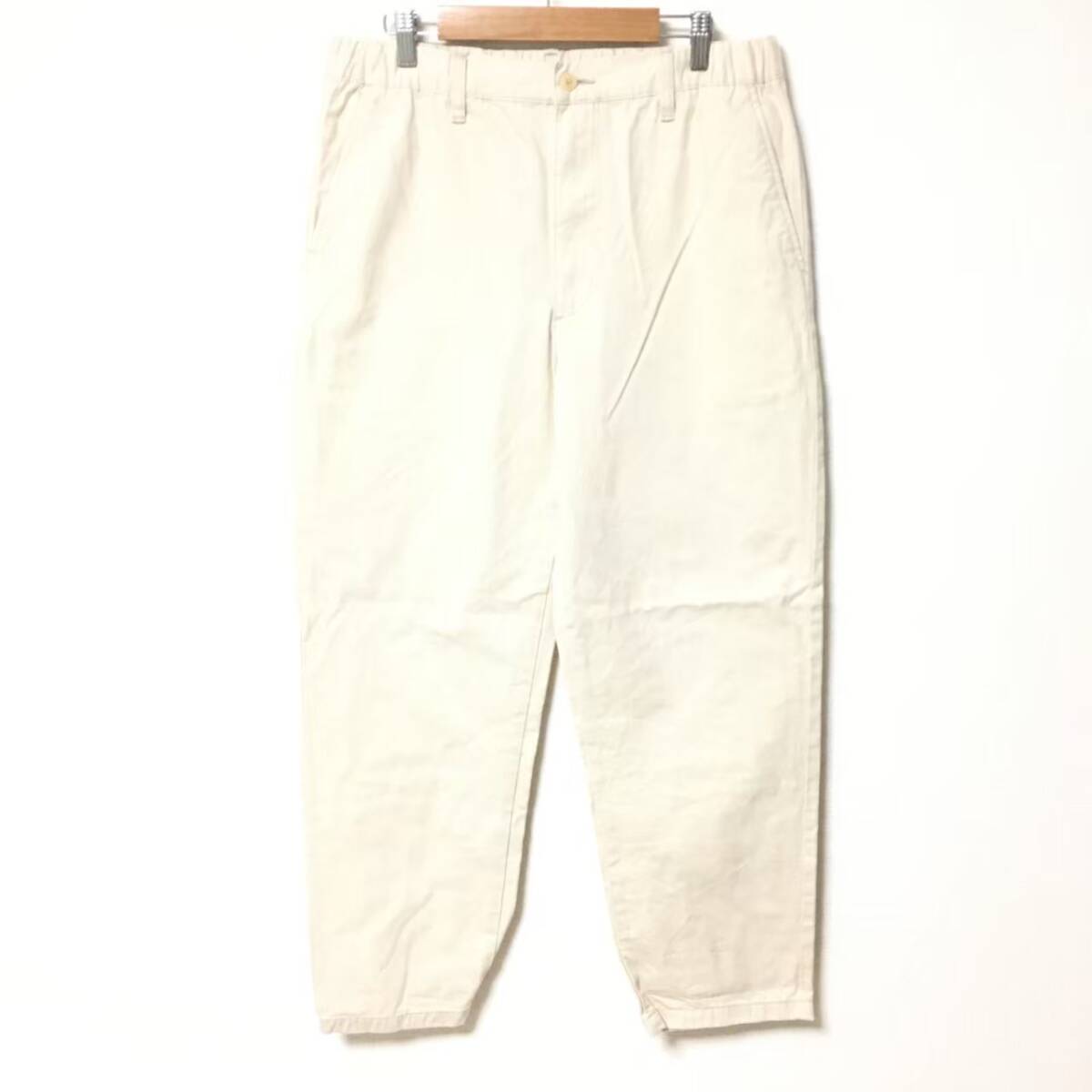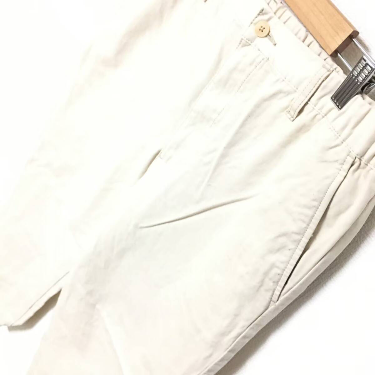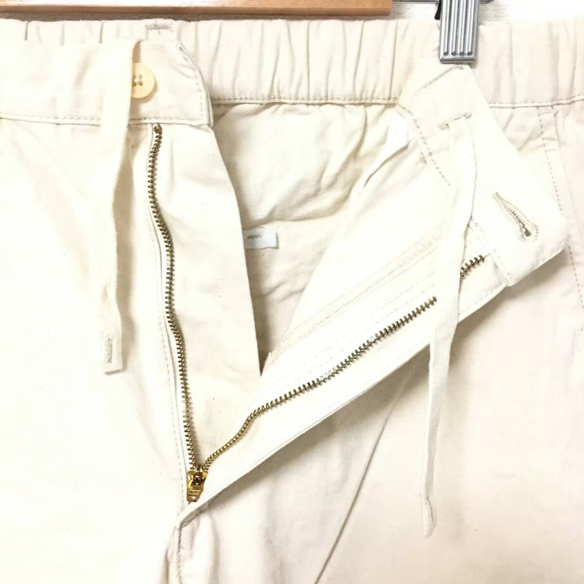 良品計画のパンツです。ナチュラルなコットンの 色味を楽しめる素材感です!紐調節が可能で、ベルト無しで軽やかに履けます◎