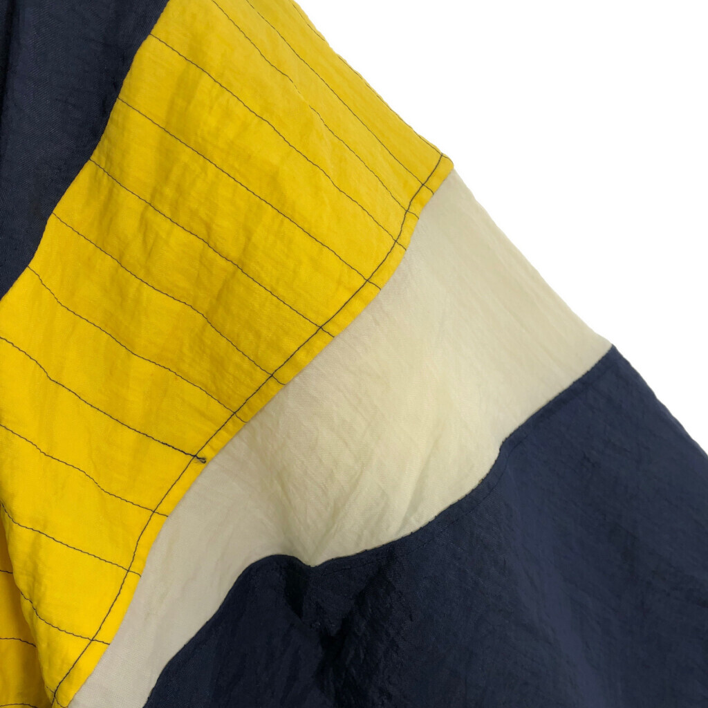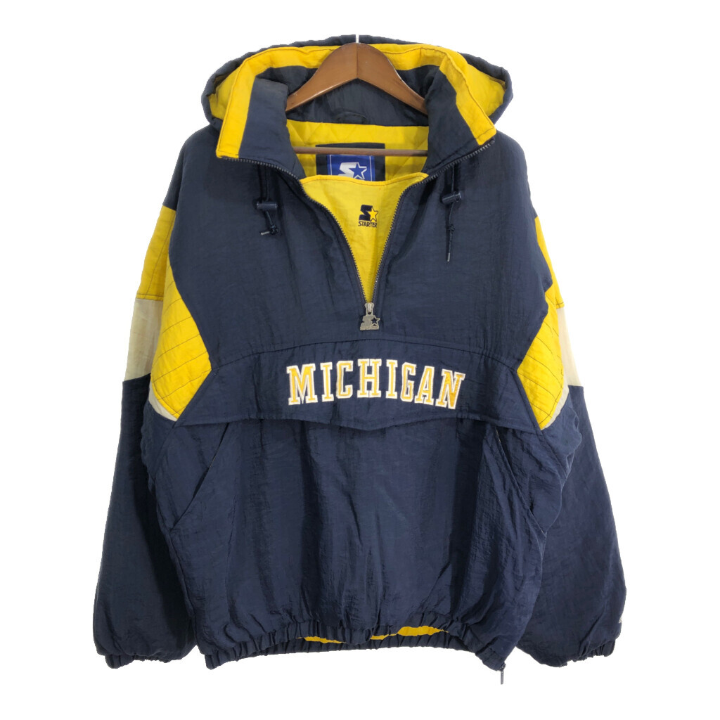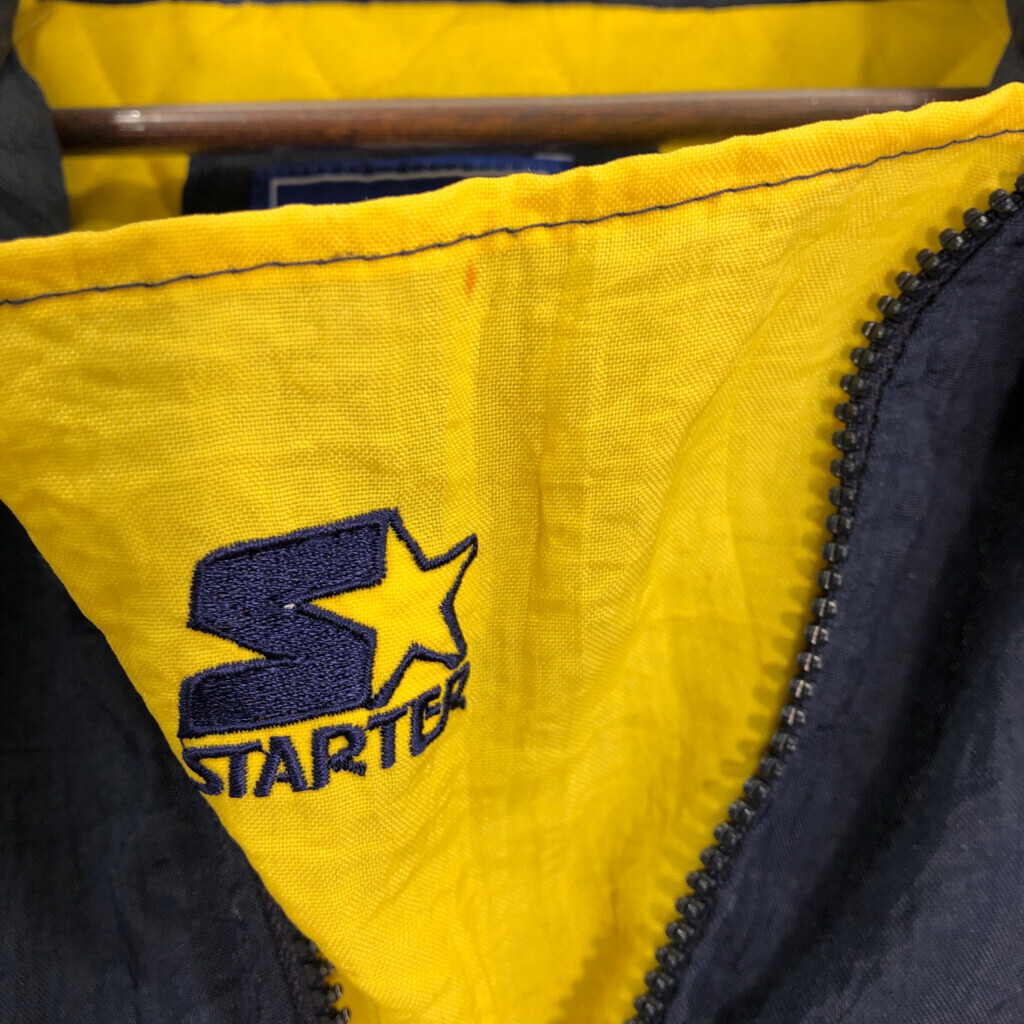 [商品管理番号] R0758 [ブランド] STARTER/スターター [サイズ] XL [実寸サイズ] 着丈:約73cm 身幅:約71cm 裄丈:約100cm 袖下丈:約64cm [主な素材] 表地 : ナイロン 裏地 : 13848 中綿 : 13897 [色] ネイビー [仕様] 90年代 ハーフジップ カレッジ 56992 [状態] 汚れ:肩、首元 特記事項: ポケットフラップマジックテープがれ | |||