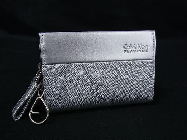 ■極美品■ Calvin Klein カルバンクライン レザー ラウンドファスナー コインケース コインパース 小銭入れ シルバー系 DH8707