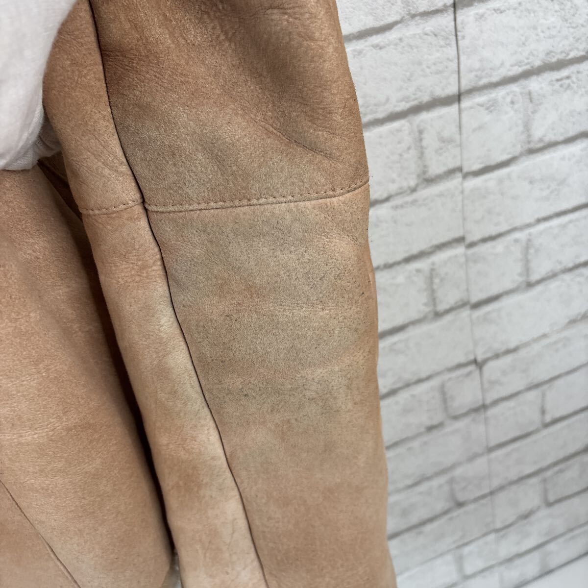 NORTH BEACH(ノースビーチ)のラムファーコートです。上質なラムファーを贅沢に使用し、裏地から襟、袖口までふんだんにファーが施された高級感あふれる1着です。タグに「This leather is imported from SPAIN」とあるように、スペイン製レザーが使用されています。