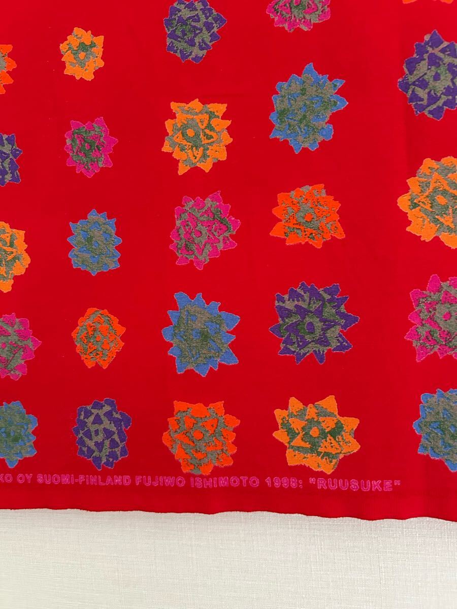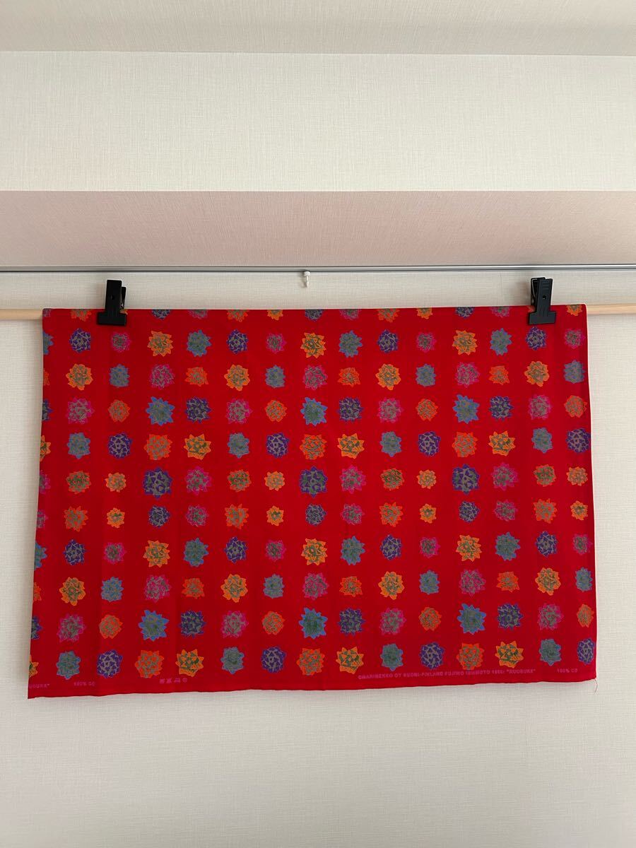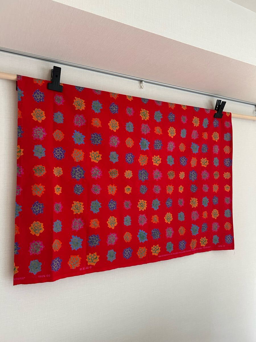マリメッコの端切れです。一辺はみみ、両サイドは折り返してミシン縫い、もう一辺は切りっぱなしです。