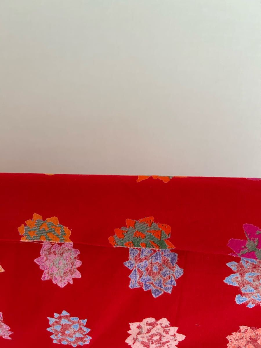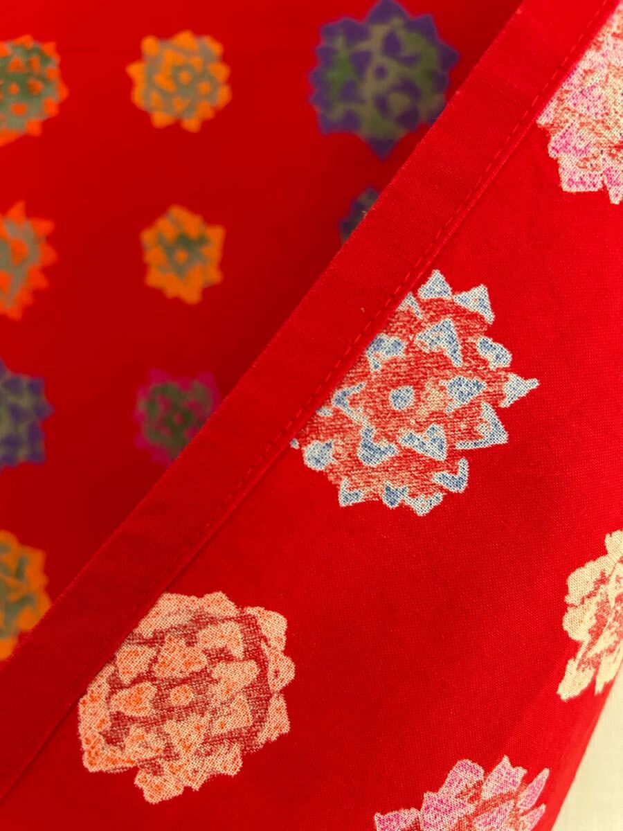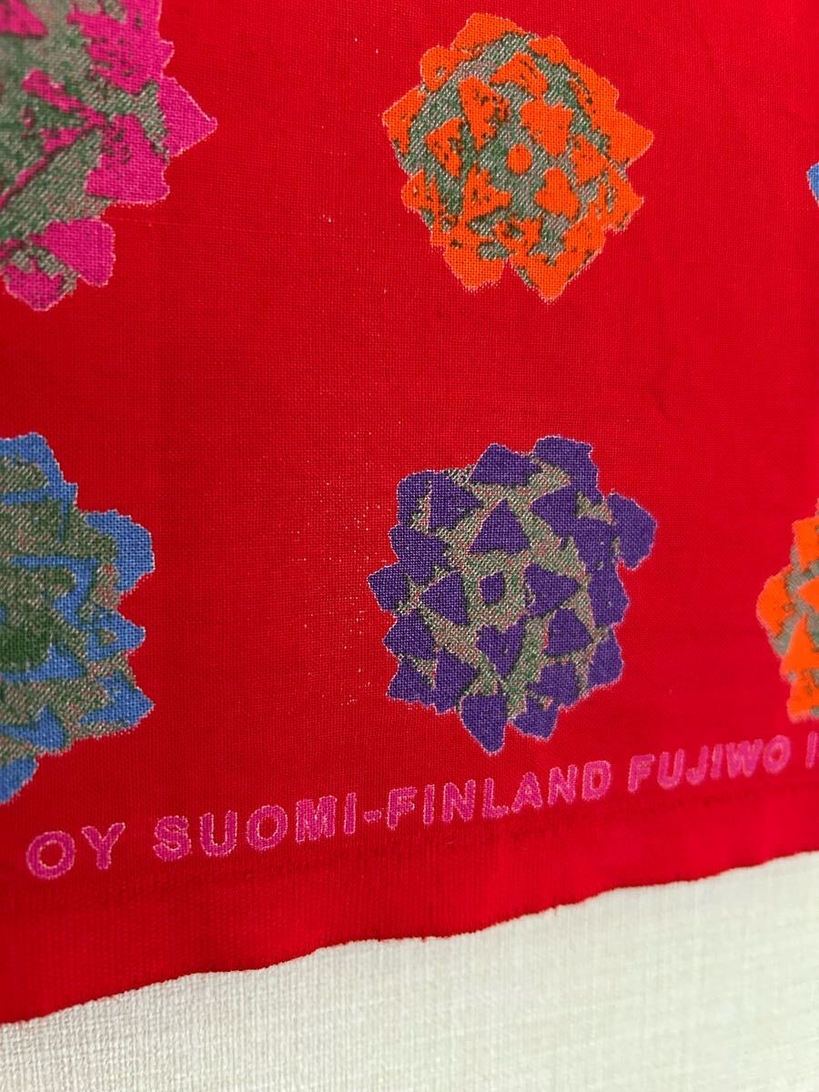 マリメッコの端切れです。一辺はみみ、両サイドは折り返してミシン縫い、もう一辺は切りっぱなしです。
