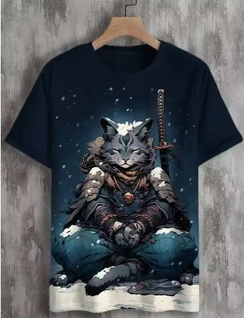 【新品・Mサイズ】Tシャツ 両面プリント かっこいい猫 和風 サムライキャット 武士 和柄※他サイズ有、コメントより問い合わせください