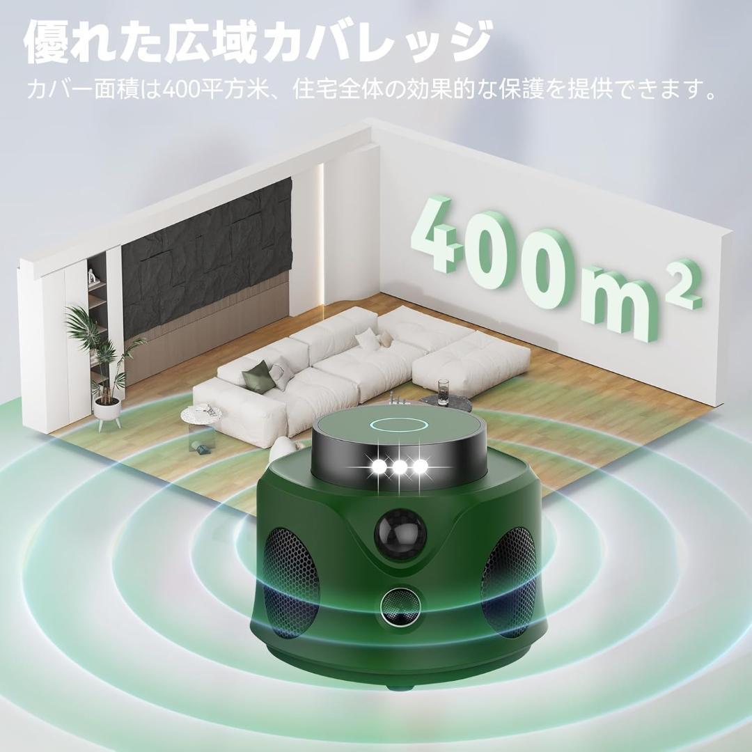 ネズミ駆除超音波は360°のスピーカーで作動し、約400平方メートル(畳約260枚)をカバーできます。超音波は周波数など市販品よりも有効範囲が広く、9個のフラッシュを組み合わせると撃退効果がいいです。超音波は直線で行い、周囲に障害物を置かない方が良いでしょう。障害物が多い場合は複数配置するとさらに効果的です!