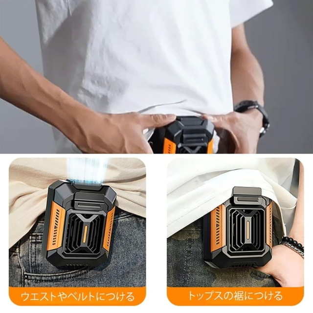 腰掛け冷却ファン グリーン クリップで簡単装着 携帯扇風機 大風量 首掛け/腰掛け/卓上/手持ち 熱中症対策 USB充電ハンディファン3段階風量