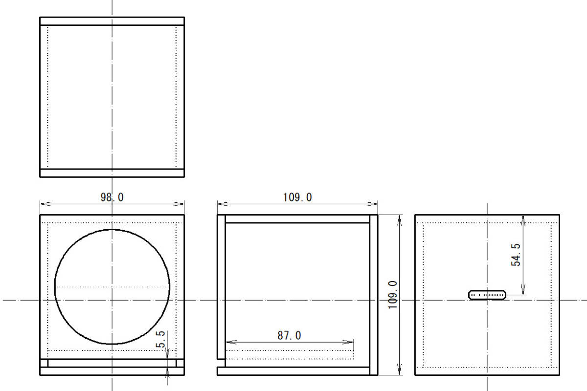 【5.5M1010C】5.5mm厚 MDF キューブ形状 前面スリットバスレフ型 エンクロージャー 組立 キット | ||||