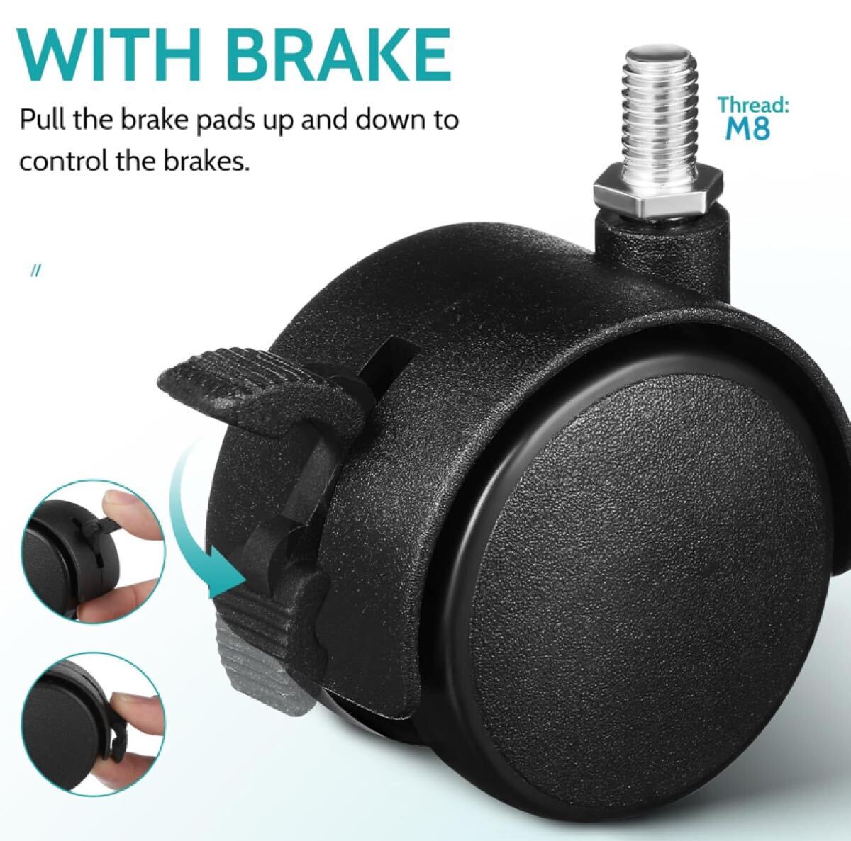 【ネジ式キャスター m8 簡単な取り付け】ネジ付きデザインを特徴とするこれらの家具用ホイールは、さまざまな場所に簡単に取り付けることができ、セットアッププロセスを簡素化します。