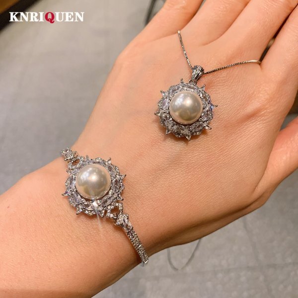 ジェムストーンジュエリーセット(ネックレス、ブレスレット)、14mmホワイトビッグ真珠