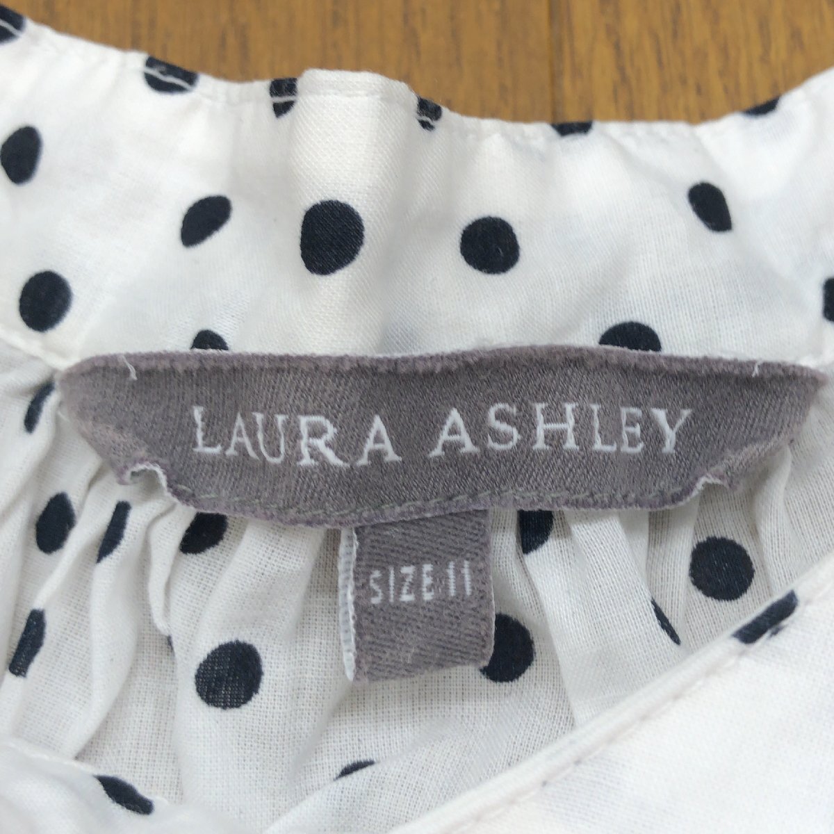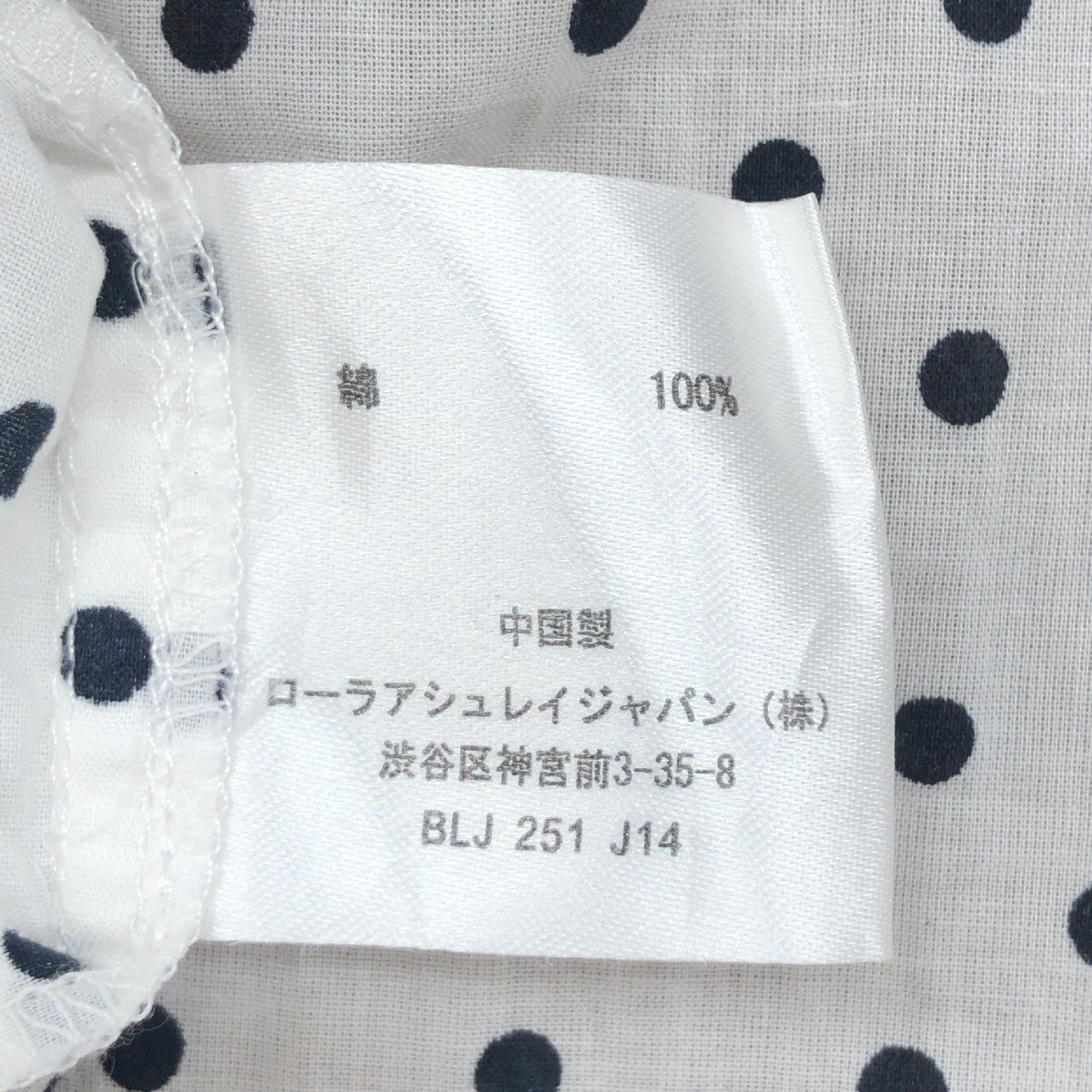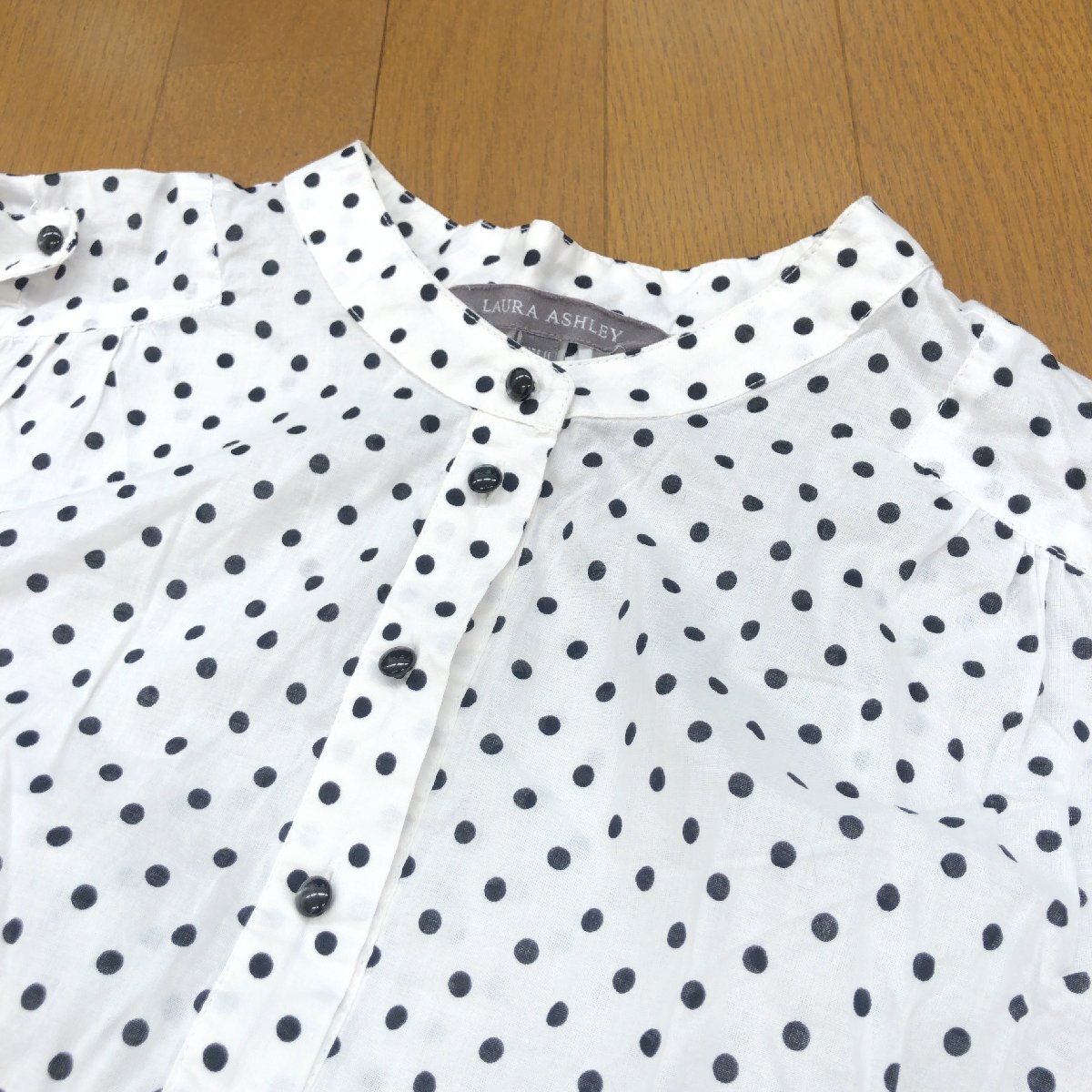 美品 LAURA ASHLEY ローラアシュレイ バンドカラー ドット フレンチ シャツ 11(L) 白 ホワイト 半袖 ブラウス 水玉柄 レディース 婦人