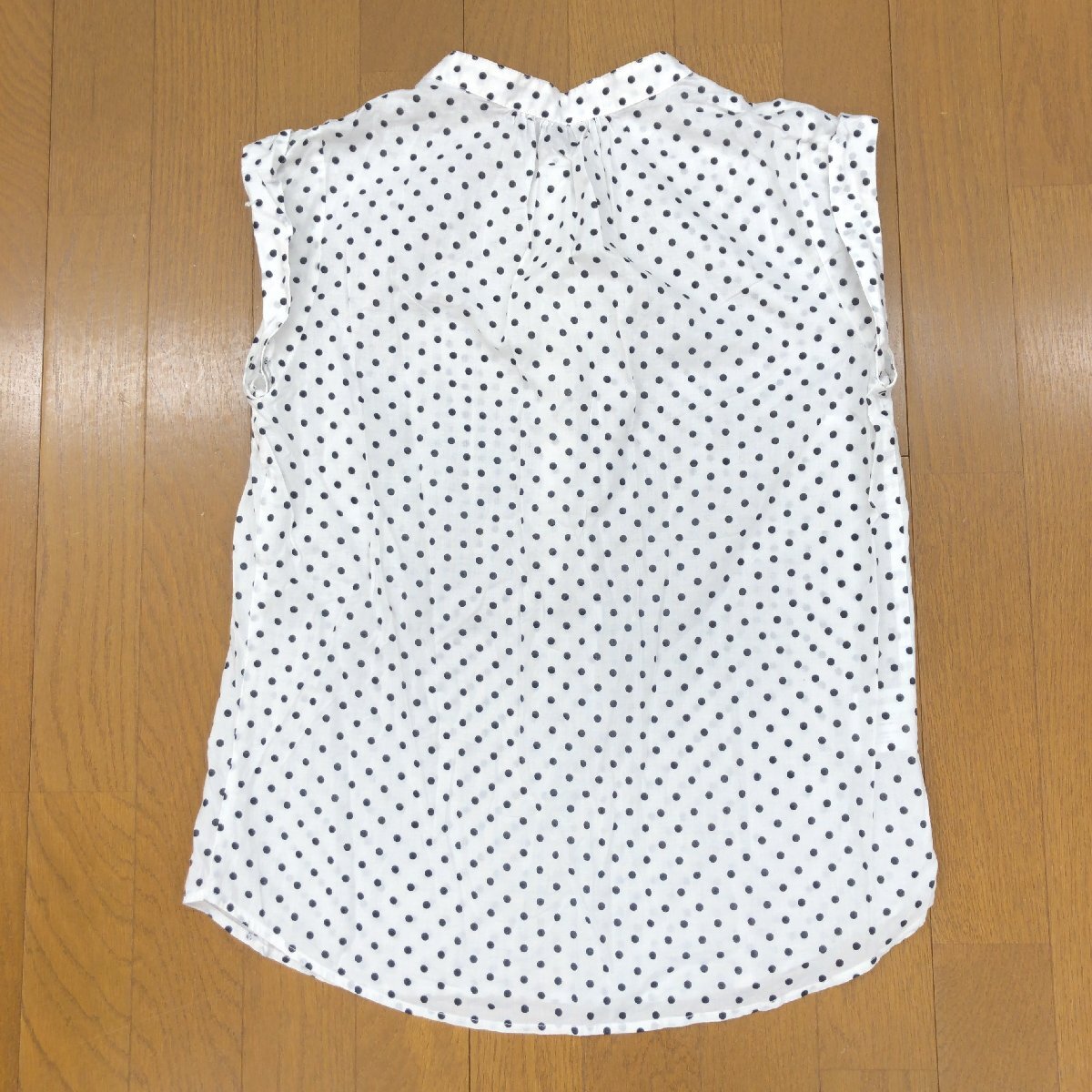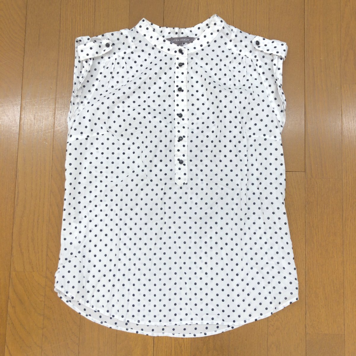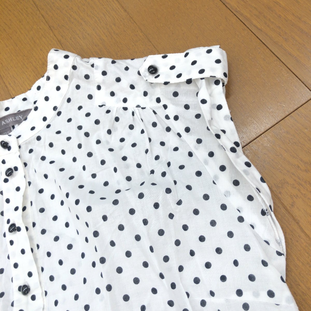 美品 LAURA ASHLEY ローラアシュレイ バンドカラー ドット フレンチ シャツ 11(L) 白 ホワイト 半袖 ブラウス 水玉柄 レディース 婦人