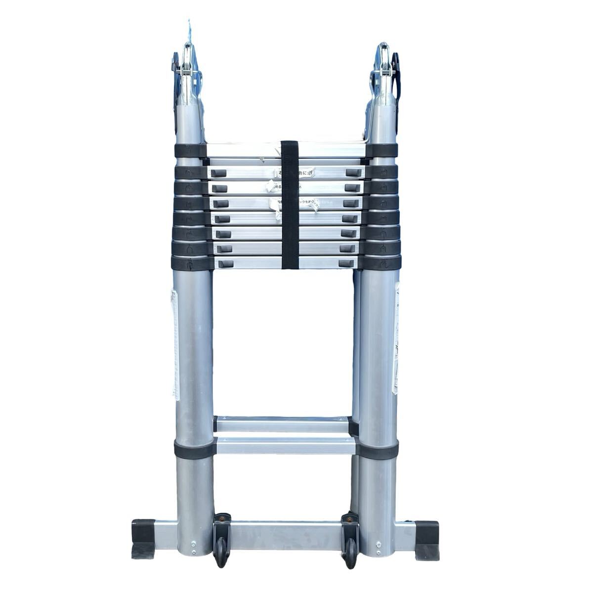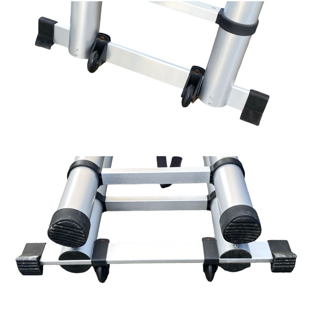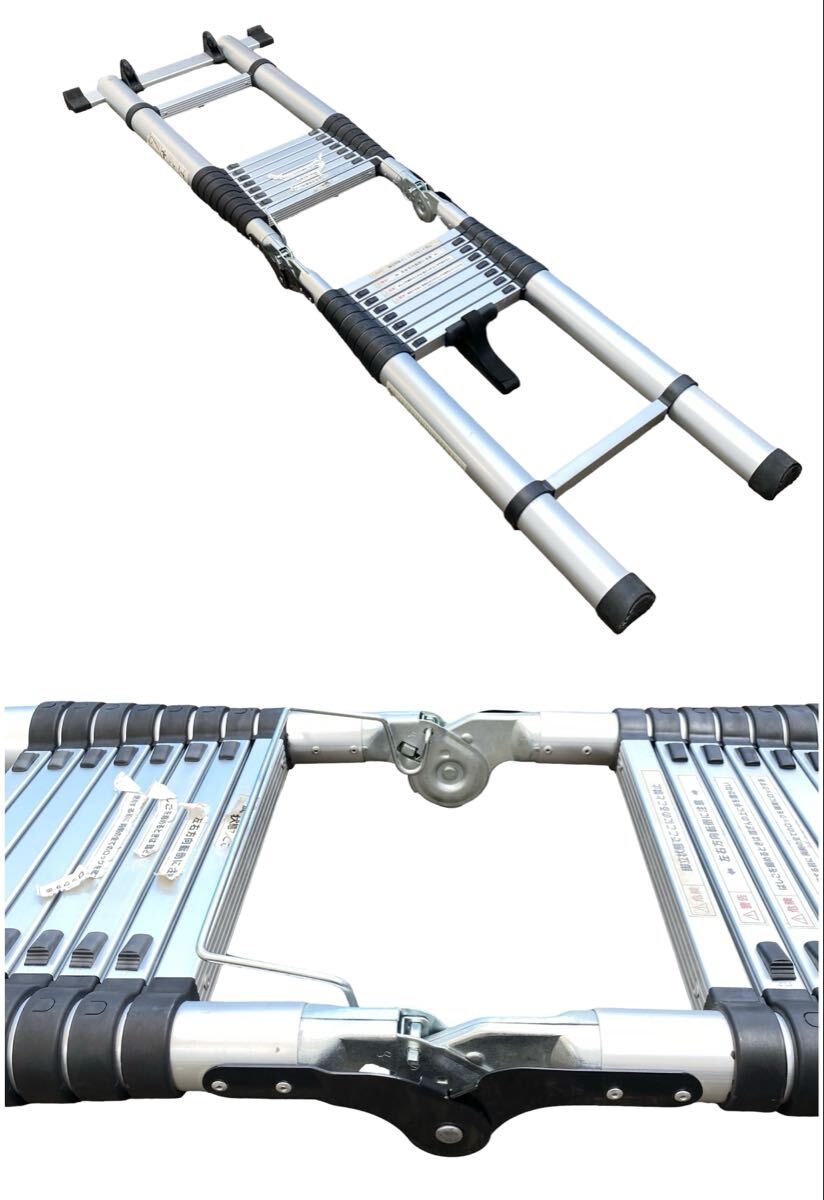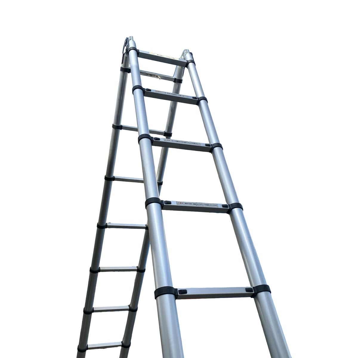 ○約7.4m■はしご兼用脚立 アルミ製 伸縮梯子 脚立の高さ 約3.1m 9段×2 高所作業 キャタツ メーカー型番不明 中古品■兵庫県姫路市発