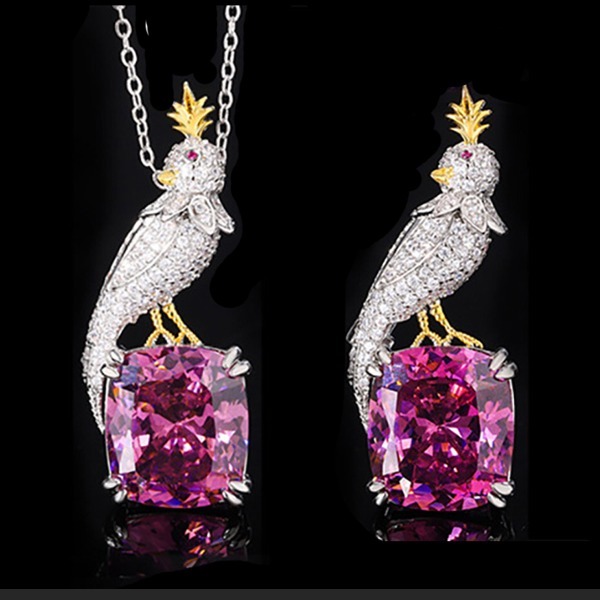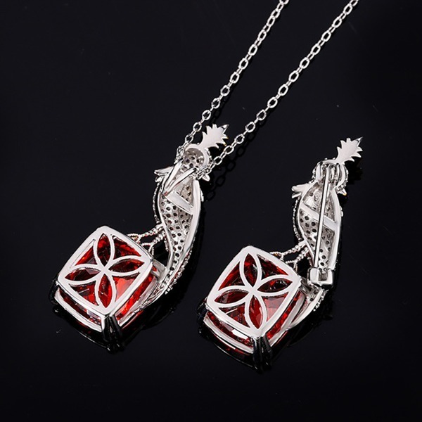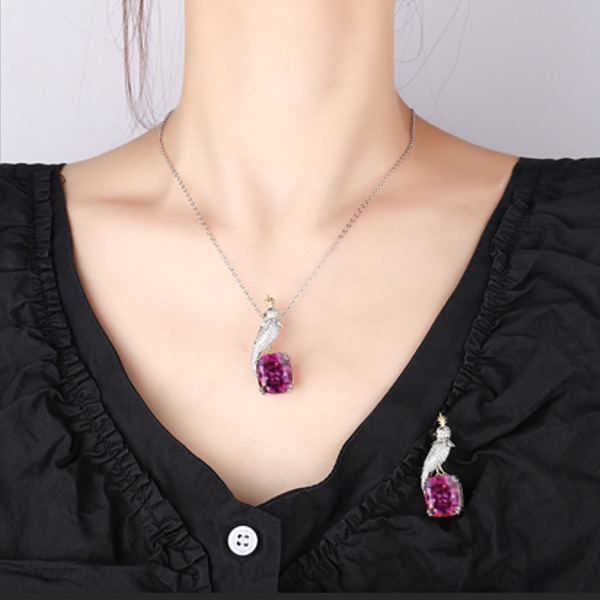 レトロ 14*16mm ピンククォーツ宝石ジュエリーセット(ネックレスペンダント、 ブローチ)、女性のための記念日ギフト