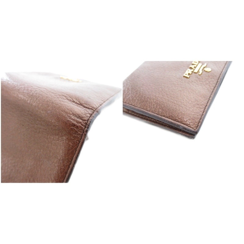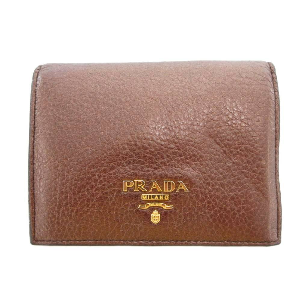 プラダ PRADA コンパクトウォレット 二つ折り財布 レザー メタリックブラウン /UO ☆AA★ レディース