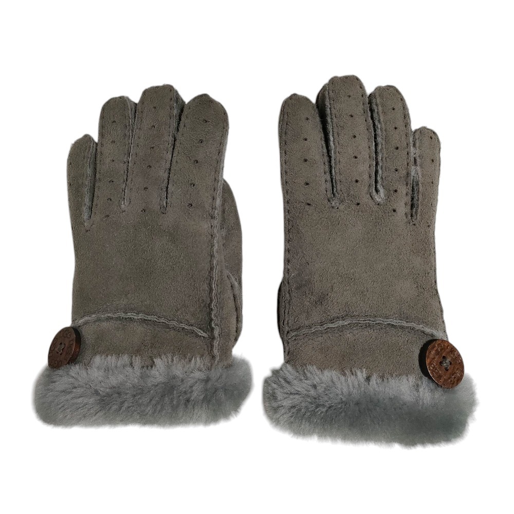 良品 UGG Australia アグ BAILEY GLOVE シープスキン スエード ベイリーボタン ムートングローブ 手袋 S グレー