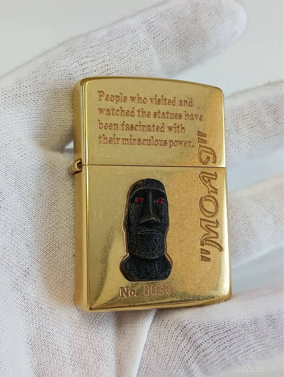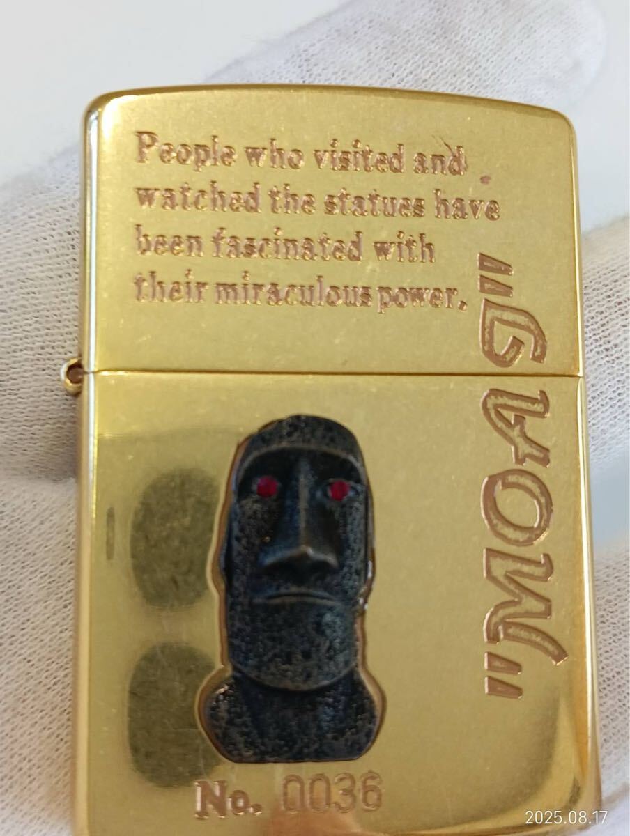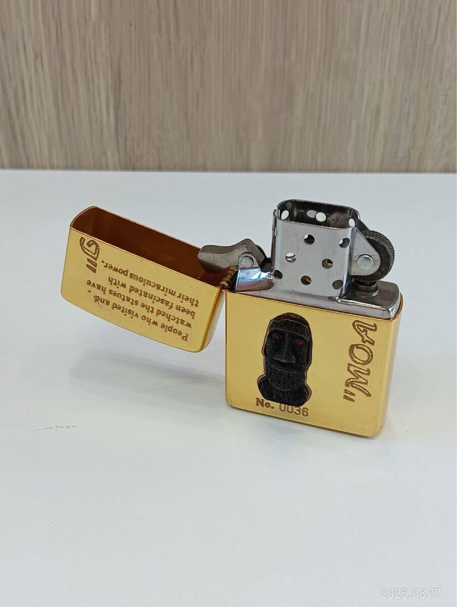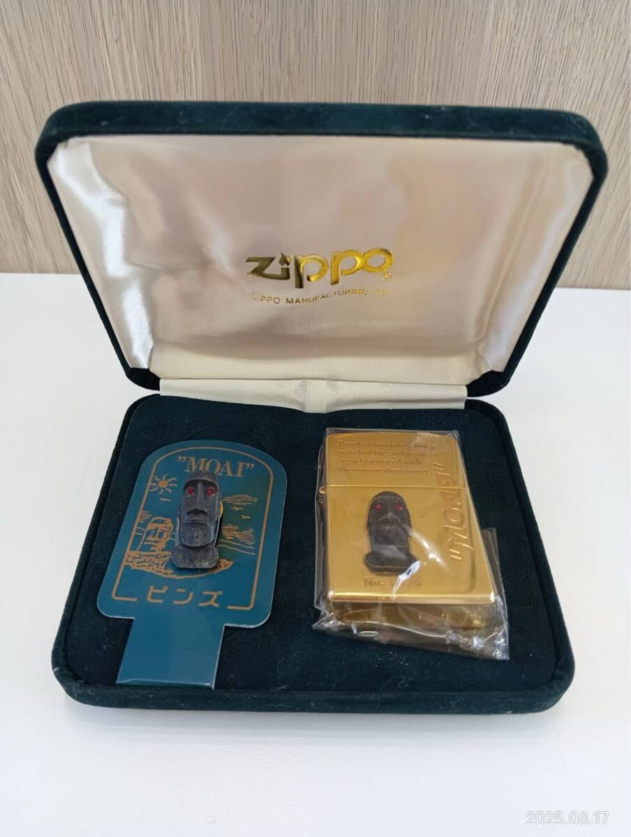MOAIモアイ Zippoジッポライター オイルライター USA製 ピンズ付き ゴールド 喫煙具 喫煙グッズ ケース付き 現状品