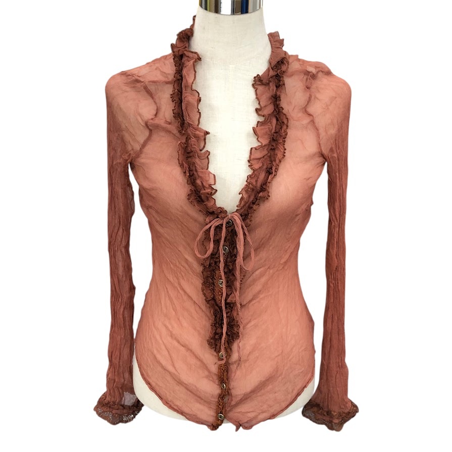 【ITTSNASAY6JO】D&G ドルチェ&ガッバーナ 長袖シャツ フリルブラウス レース ブラウンベージュ系 レディース サイズ40