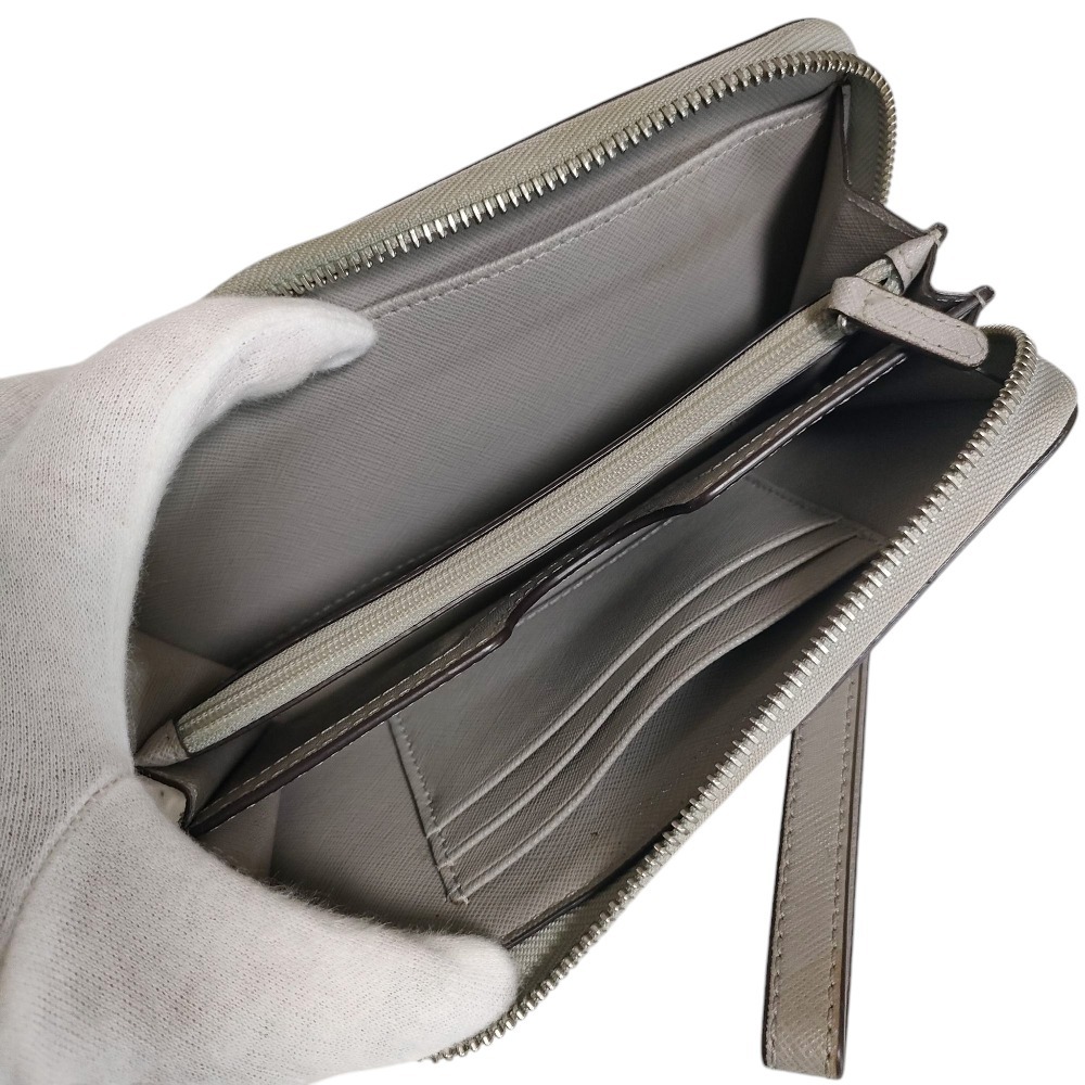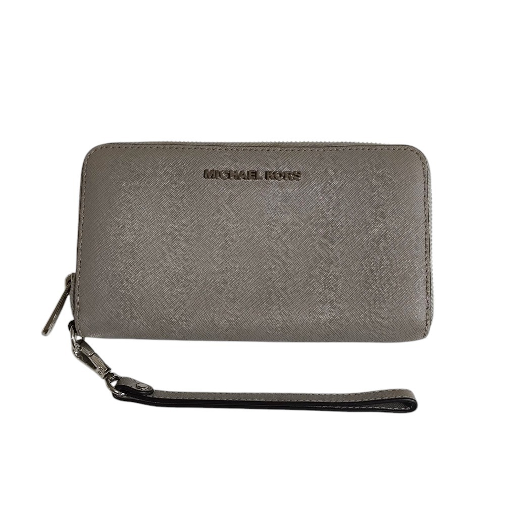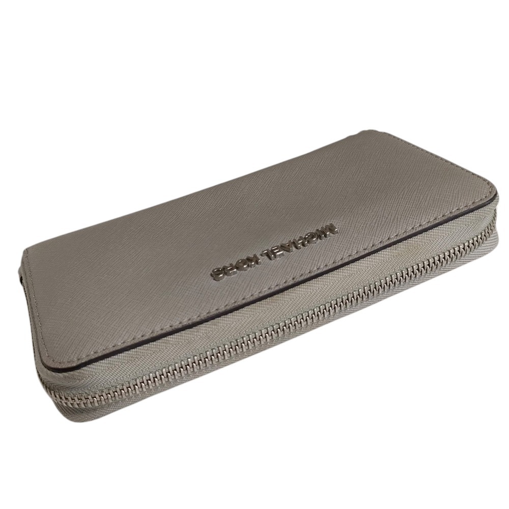 良品 MICHAEL KORS マイケルコース レザー メタルロゴ ラウンドファスナー ロングウォレット 長財布 グレー