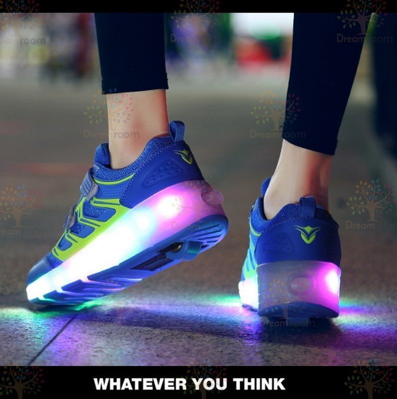 光る☆LED ライトアップスニーカー&ローラーシューズ 一体型 【K-373ブルー 23.5cm】夜間 スケート靴 反射材 ジョギング 自転車