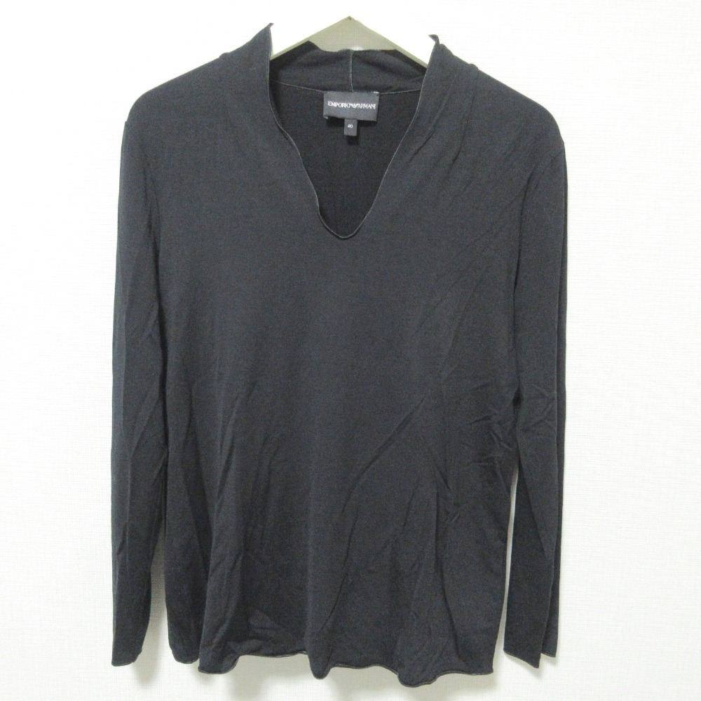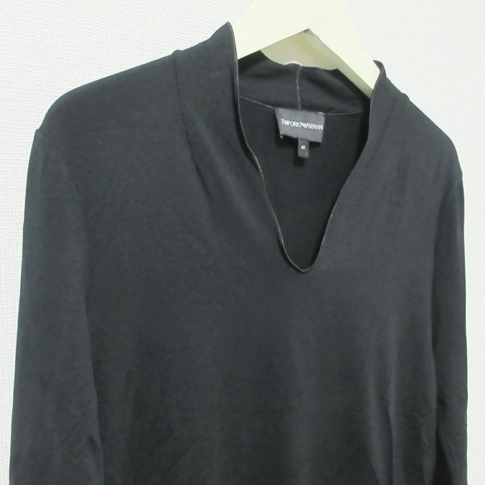 美品 EMPORIO ARMANI エンポリオアルマーニ ストレッチ ロングスリーブ 長袖 Vネック プルオーバー カットソー 40 ブラック