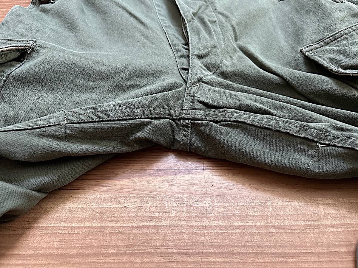 前身モデルのM47フィールドパンツは太腿から裾まで太いワイドシルエットですが、こちらのM64は太もも辺りまではゆとりがあり裾にかけて細くなっていくテーパードシルエットでスタイリングがしやすいパンツです。