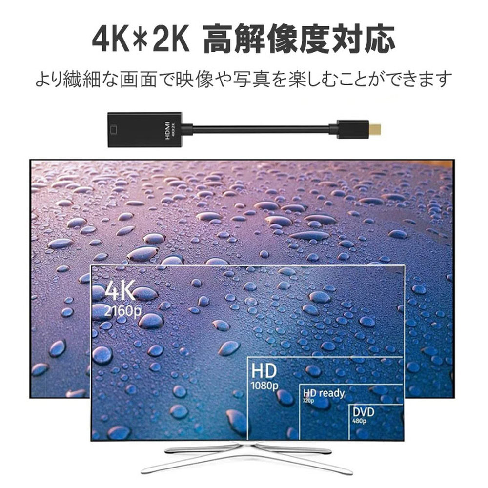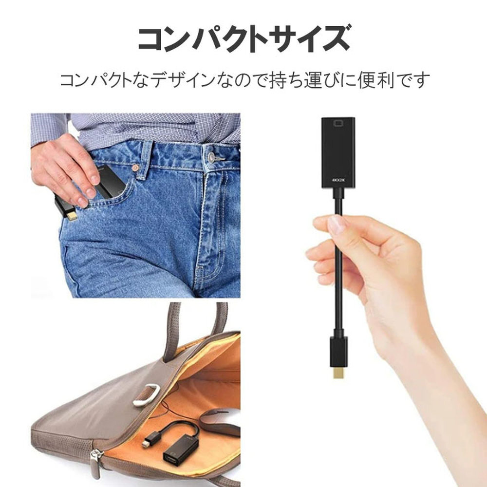 Mini DisplayPort(オス) to HDMI(メス) 変換アダプタ 4K対応 UHD 持ち運び便利 MiniDP → HDMI GWMINIDP24K