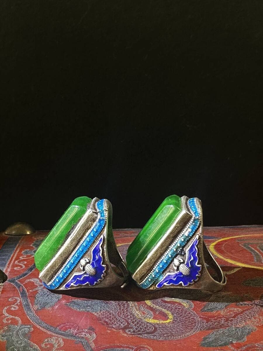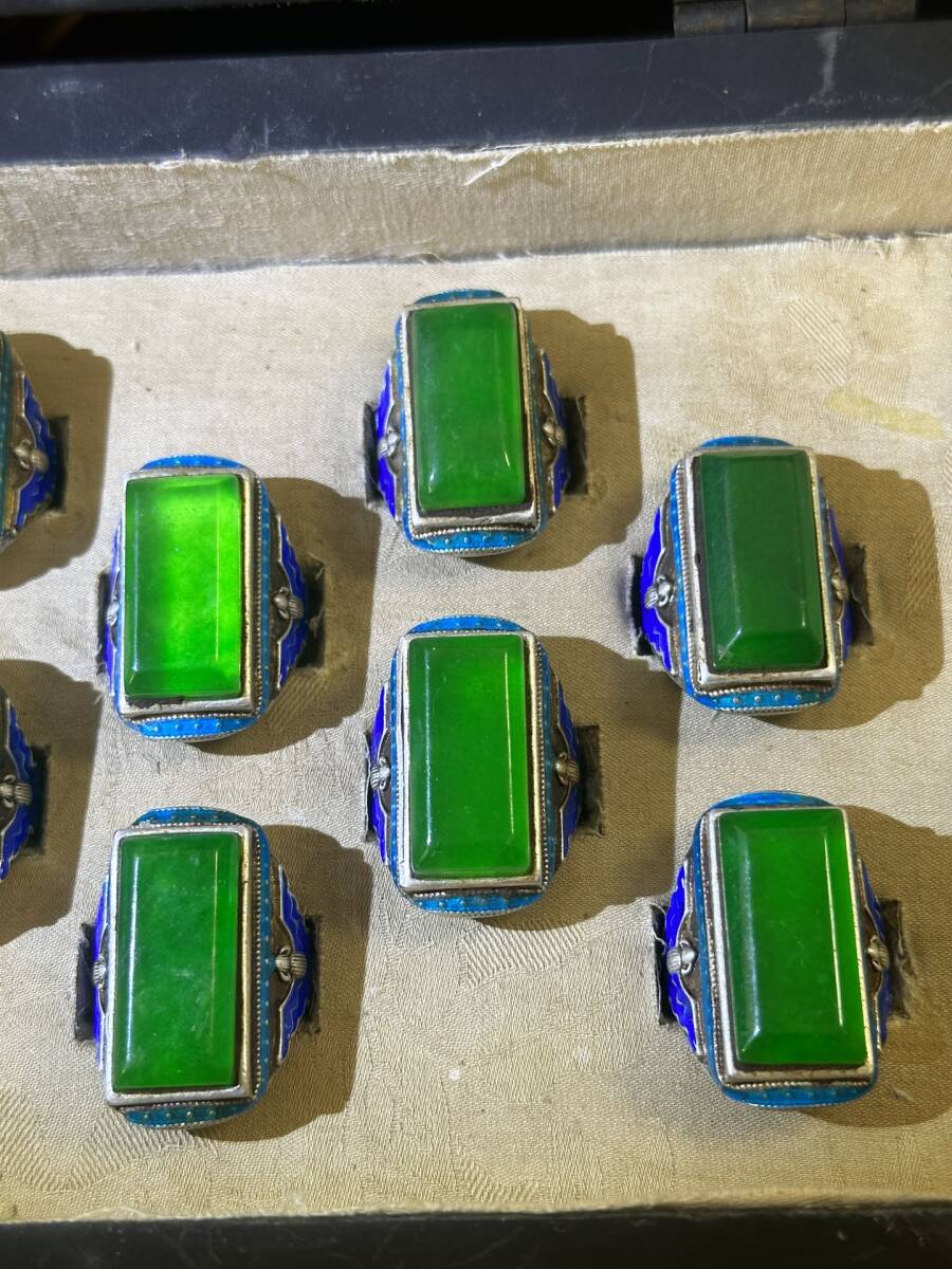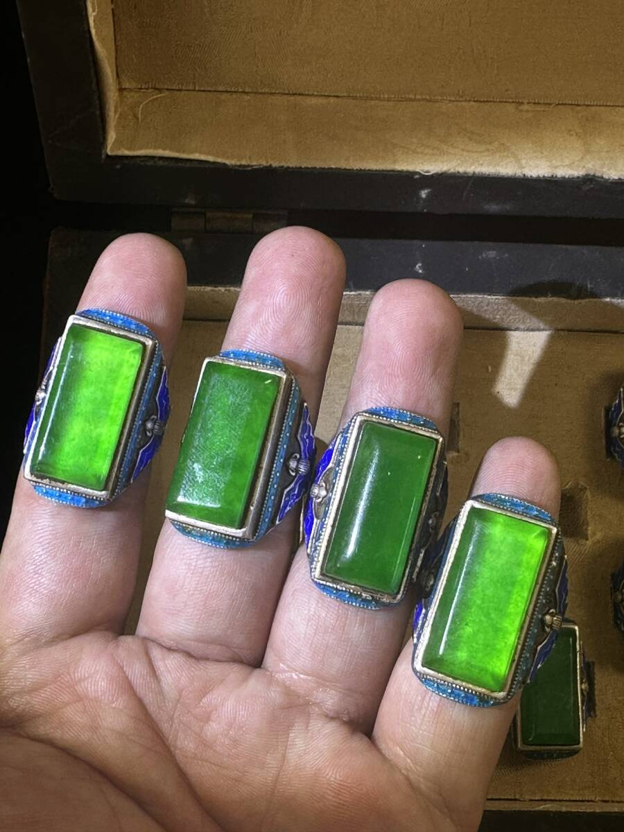 *珍品旧蔵* 清 塗モザイク罕見極品高冰陽綠翡翠 戒指一盒 配老漆器盒 極細工 中国古玩 骨董品 古美味 H48