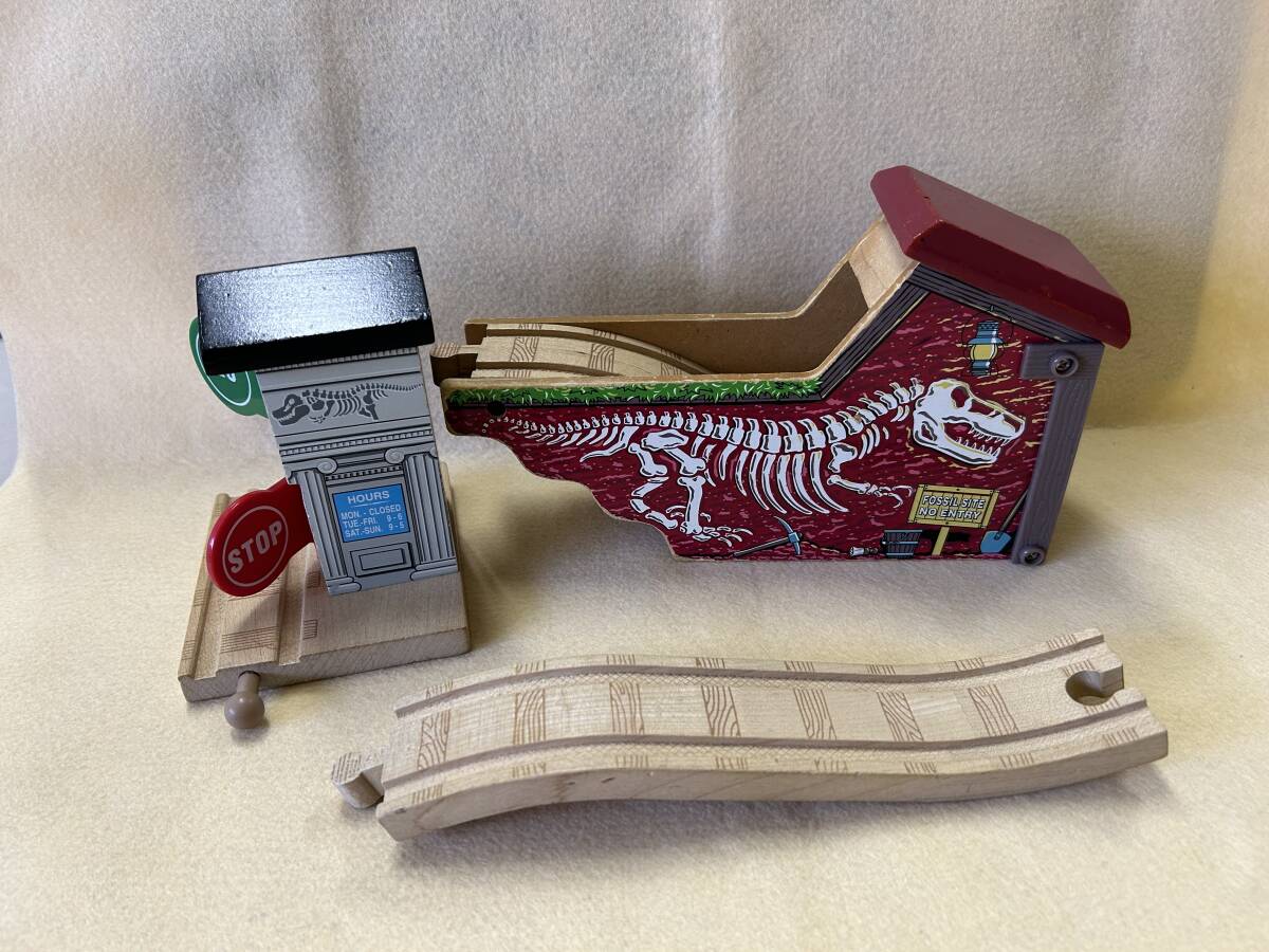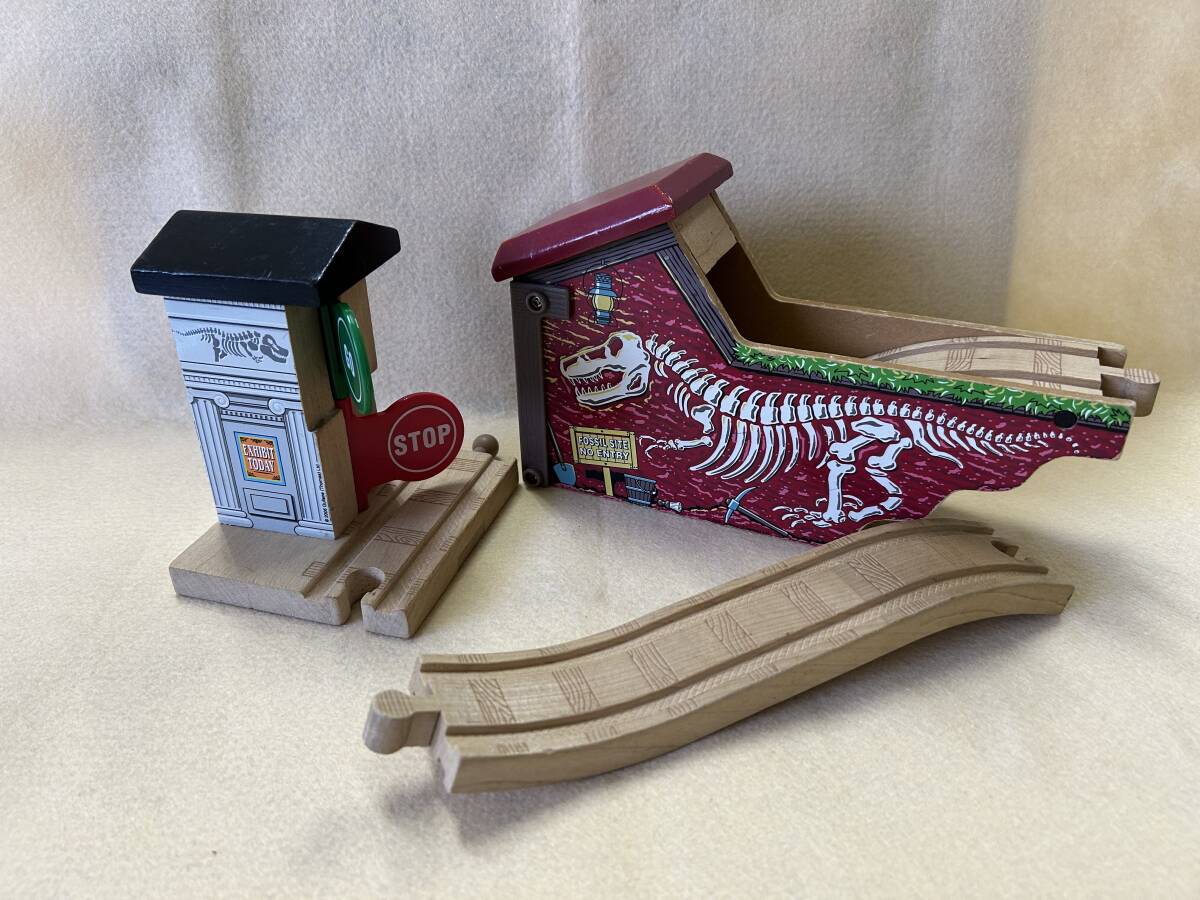 中古 知育玩具 木製レール きかんしゃトーマス 信号所 STOP AND GO 恐竜博物館化石トンネルセット鉱山 車両無しラーニングカーブマテル705