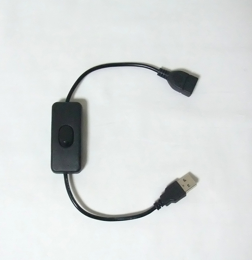 スイッチ付きUSB延長ケーブル32cm(黒色、電源供給用、データ通信不可、新品)です。