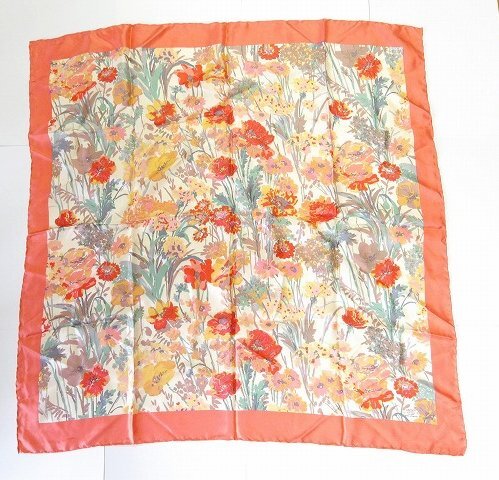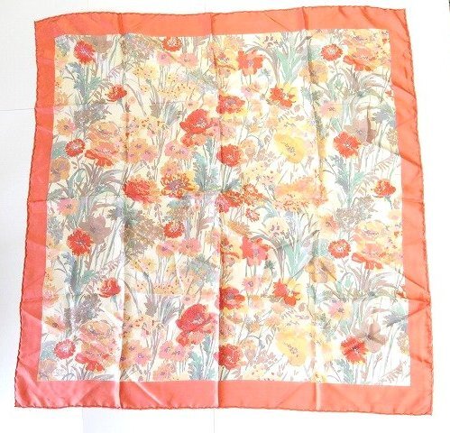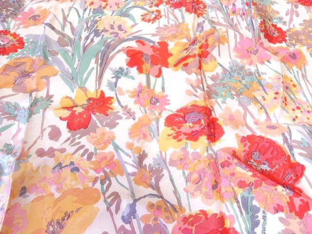 ★正規品です。ピンクをモチーフにしたカラフルな花柄デザインのシルクスカーフです。
