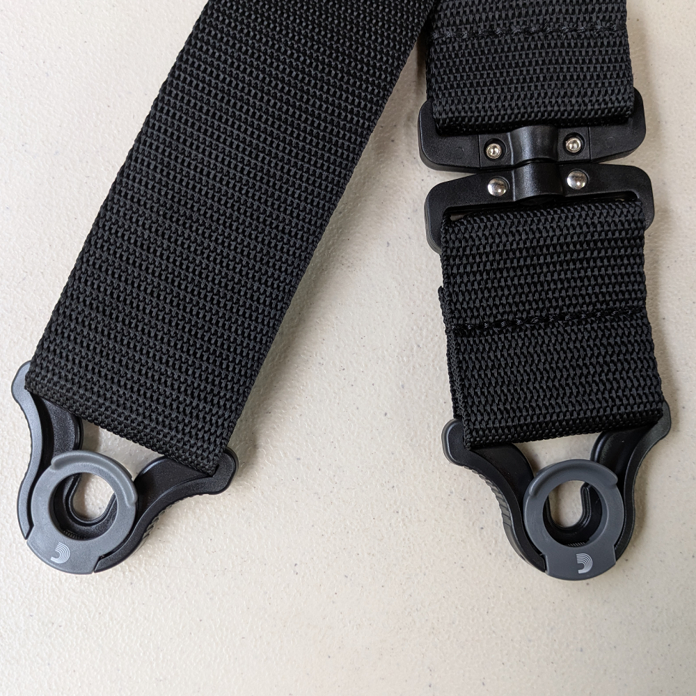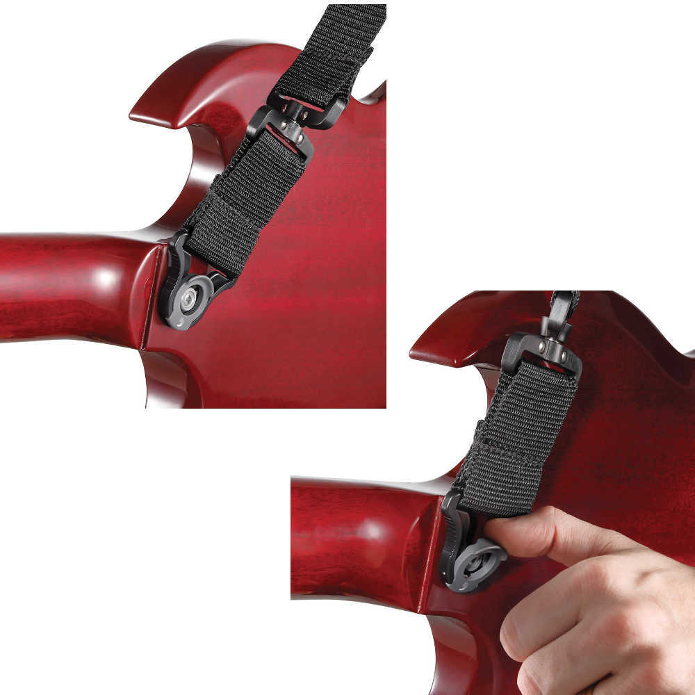 D'Addarioの2つのイノベーションを組み合わせたAuto Lock Swivel ストラップは、特許取得済のNed SteinbergerデザインのエンドピンAuto Lock機構と、ストラップの不要なねじれを防ぐことができるJoe Satriani考案のスイベル機構でギター・ボディ裏のストラップ・ボタンへの使用に最適です。