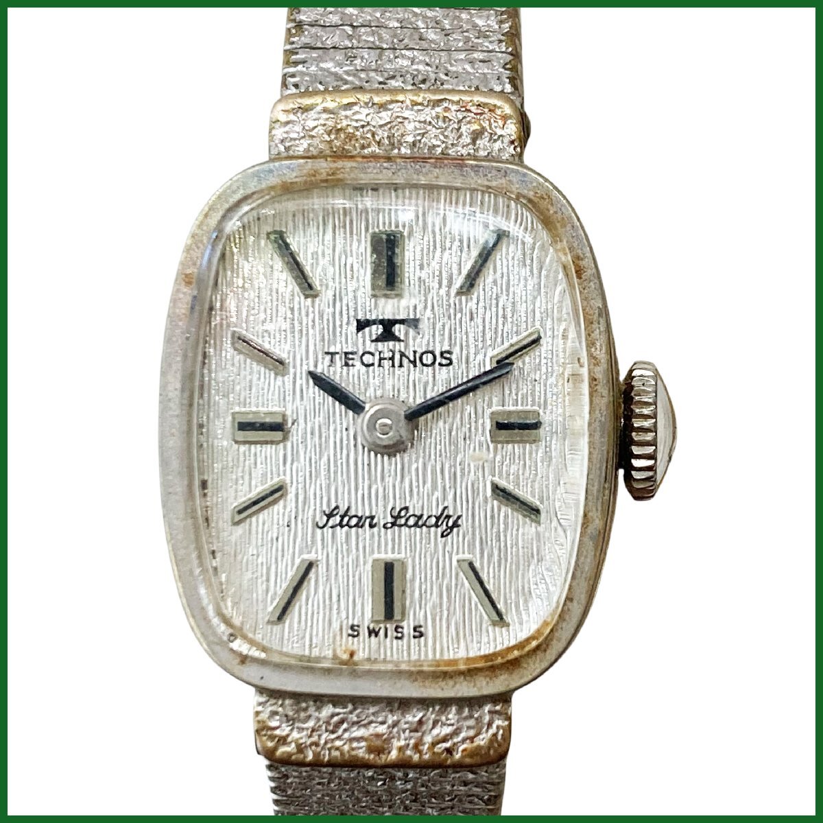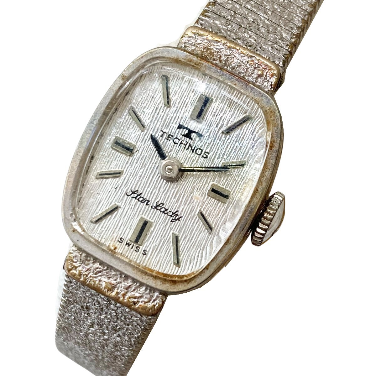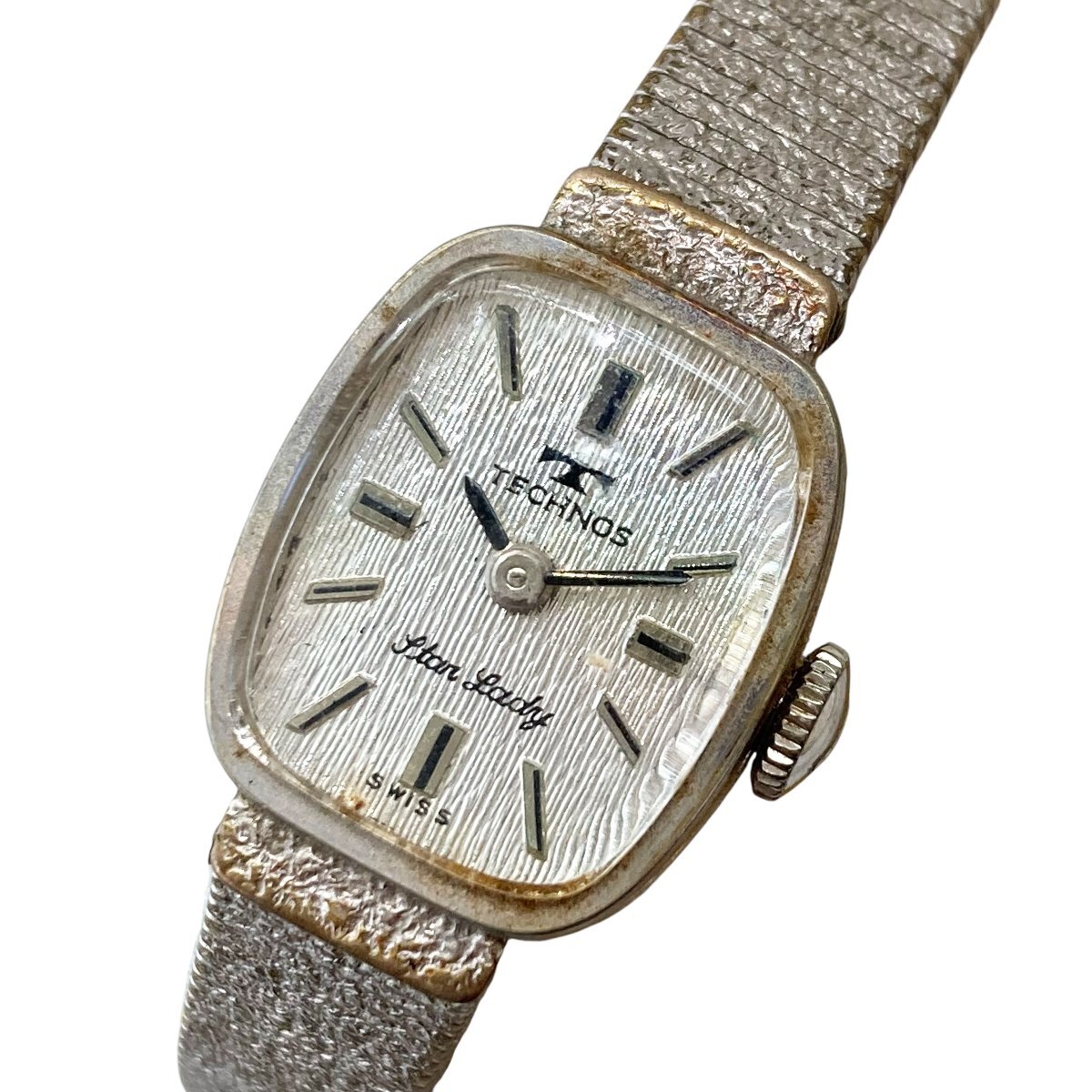 中古 ●テクノス/Technos●レディース 手巻き腕時計 スターレディ 手巻き スクエア シルバー 2針 アンティーク Star Lady 札幌