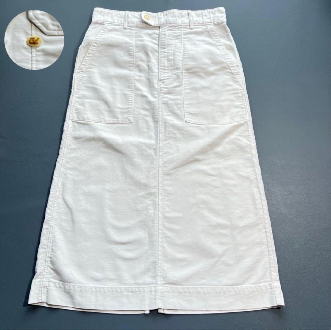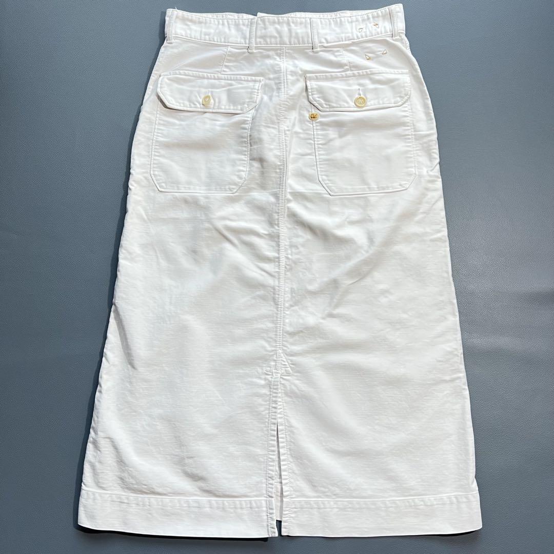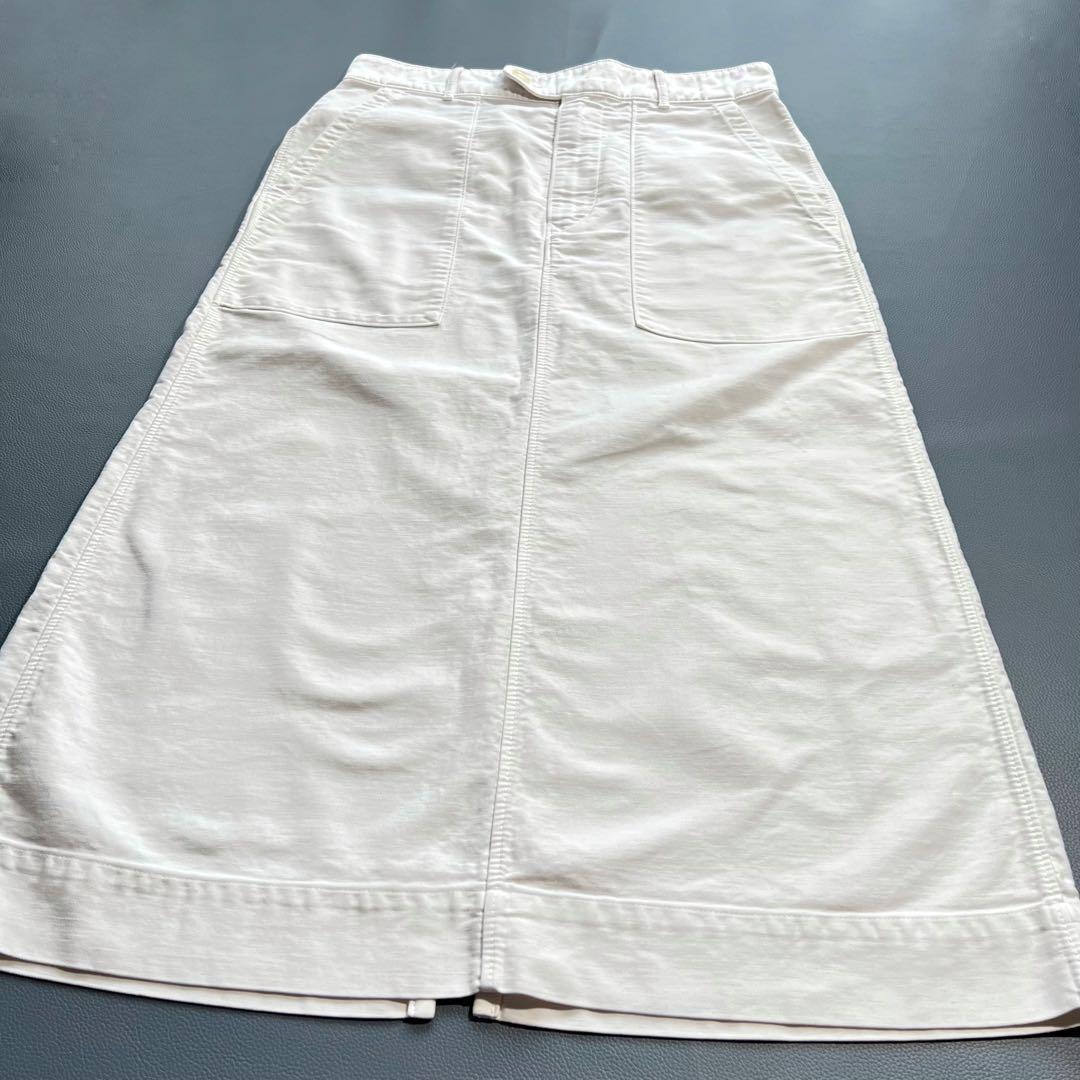 美品 45R 麦サテンのベイカースカート スリット コットン 台形 オフホワイト