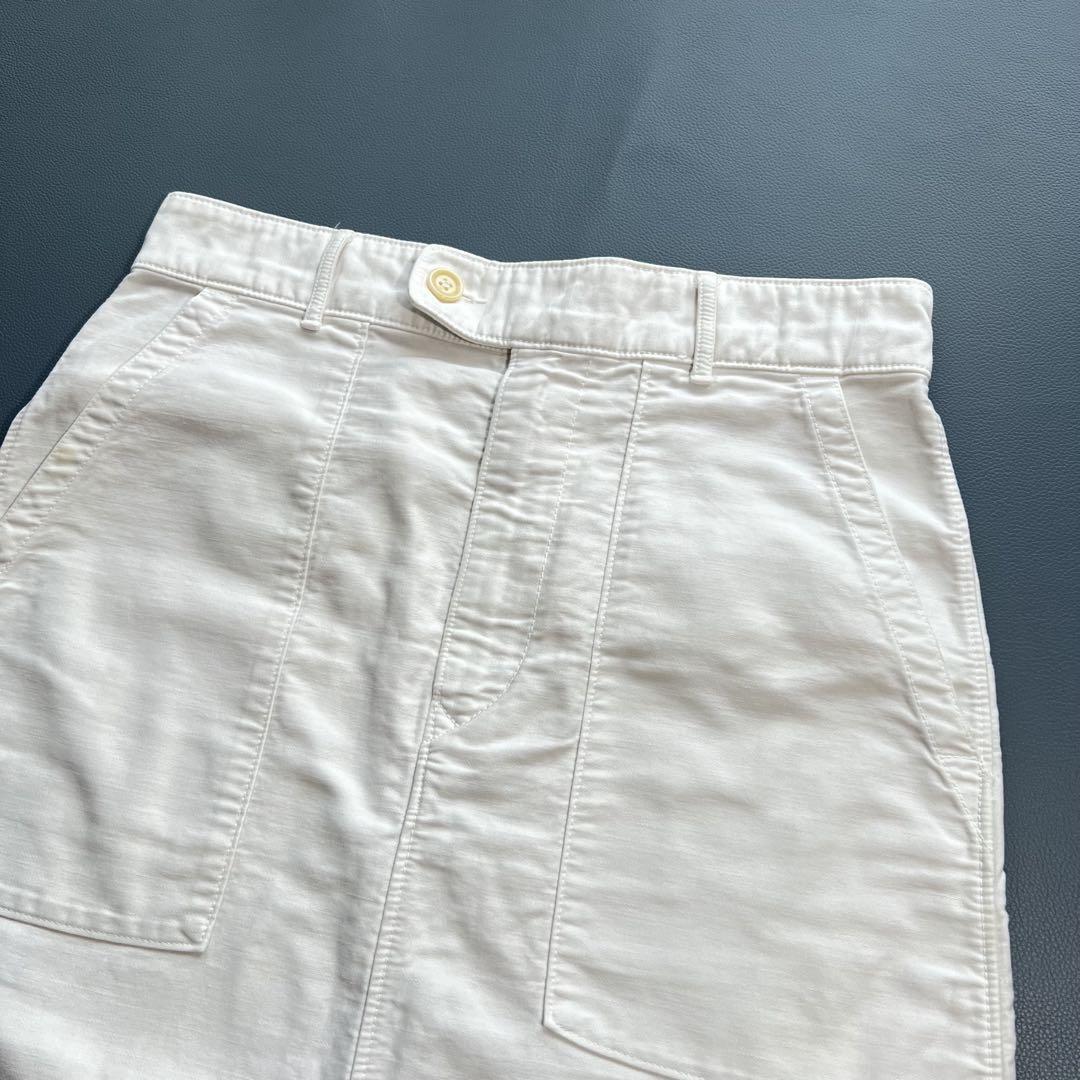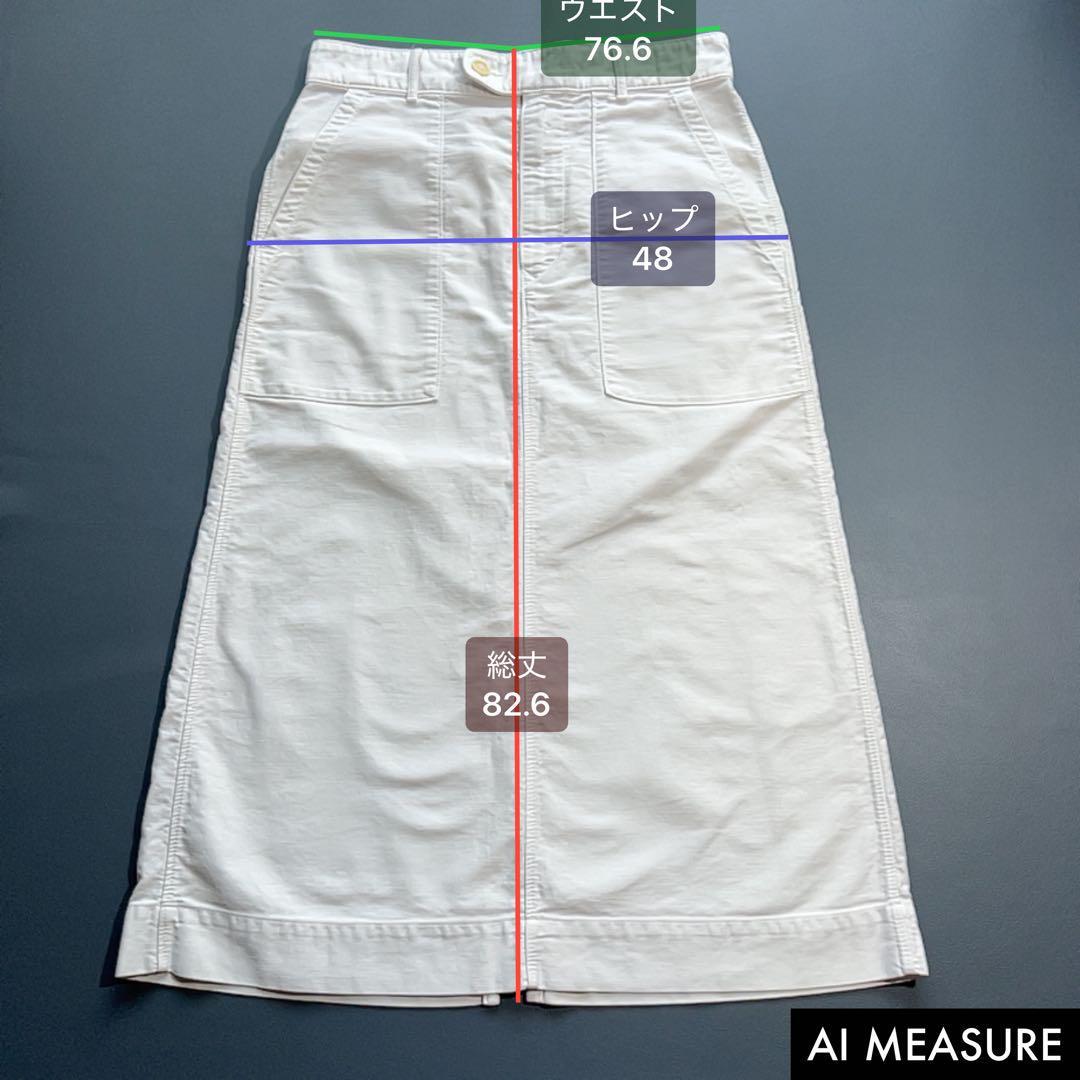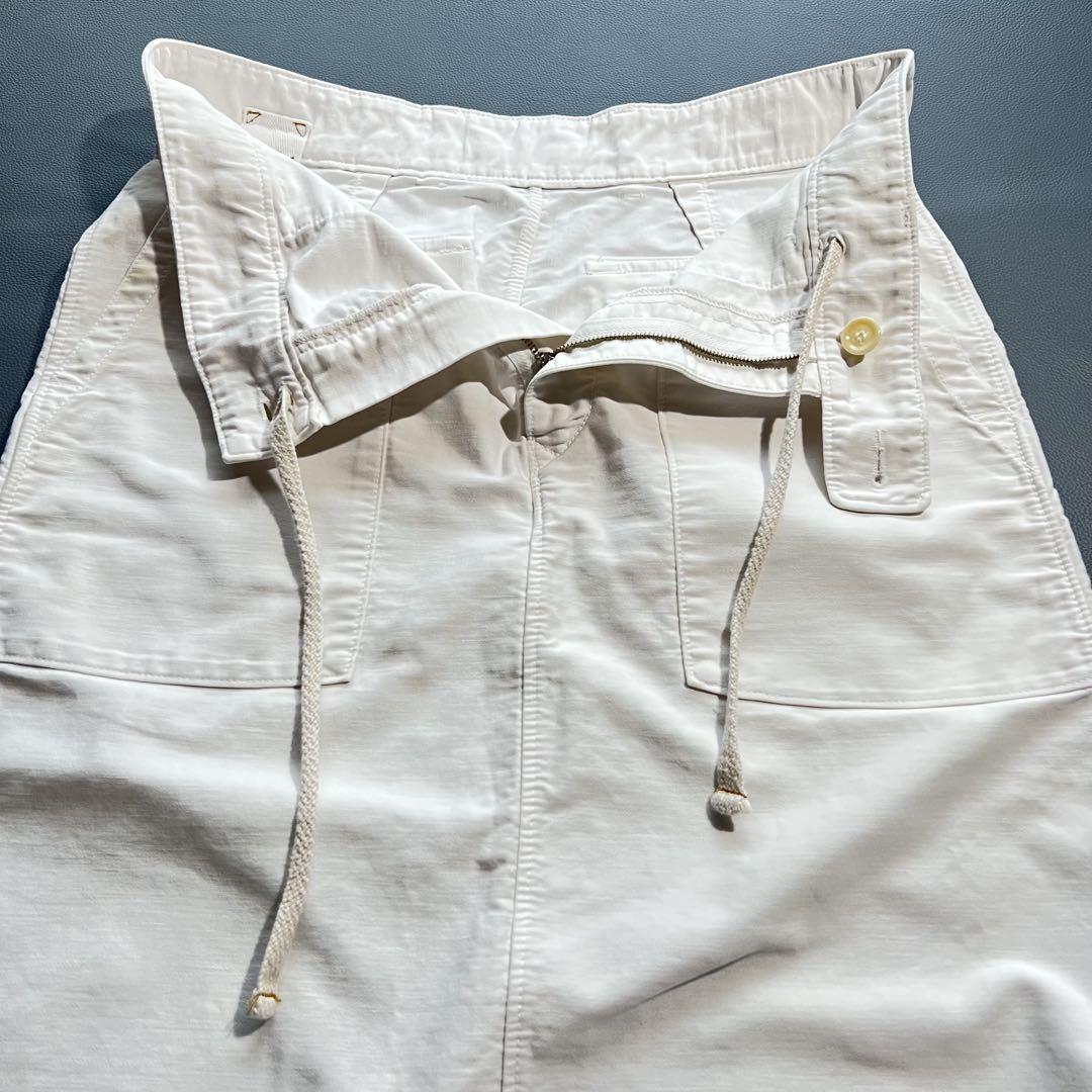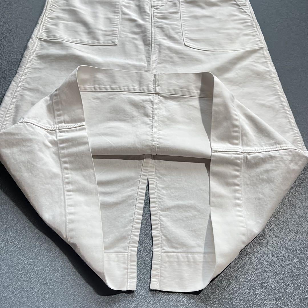美品 45R 麦サテンのベイカースカート スリット コットン 台形 オフホワイト