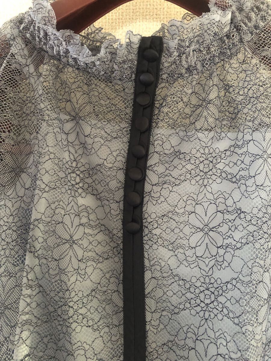 ロマンティックムードタップリのレースブラウス【feature】繊細なフラワーレースを分量感タップリに使ったブラウス。ネックデザインや、並んだ包みぼたんのディティールがクラシカルなムードを盛り上げます。パワーショルダーのデザインでも、シアー感のレースデザインだからトレンド感がありつつも優し気な印象に。ぎゅっとしぼった袖のディティールが華奢な手元を演出します。【styling】普段使いでも、オケージョンシーンでも幅広く使えるデザイン。デイリーシーンならレイヤードして、首元や袖口からレースをチラ見セすると華やか。普段のスタイリングにさりげないロマンティックムードをプラスしてくれる着回し力抜群の一枚です。