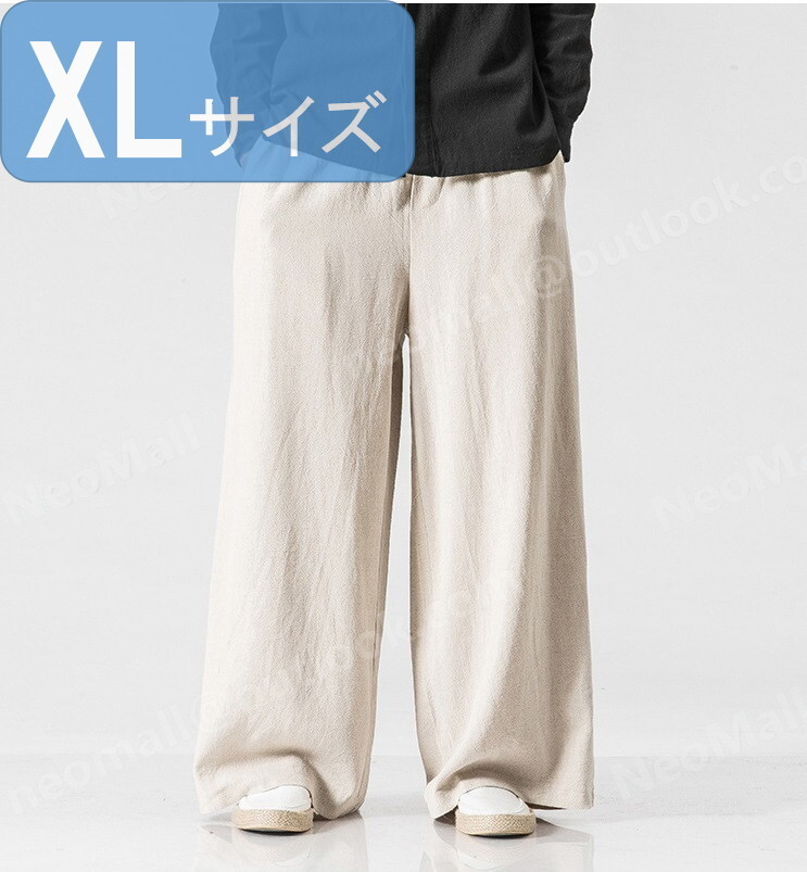 お買い得☆メンズ ワイドパンツ ベージュ XL カジュアル ロングパンツ スウェット 無地 ポケット付 オールシーズン【064】