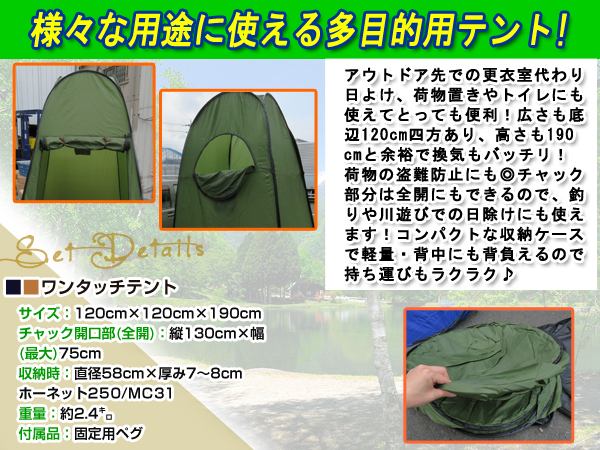 商 品 説 明パッと開くだけ!着替えや日よけ等、どこでも便利!