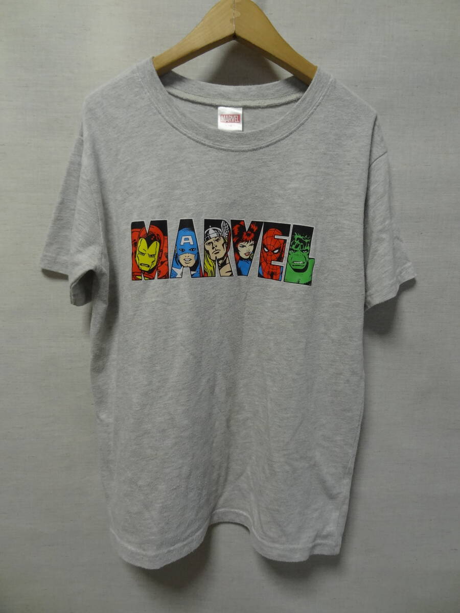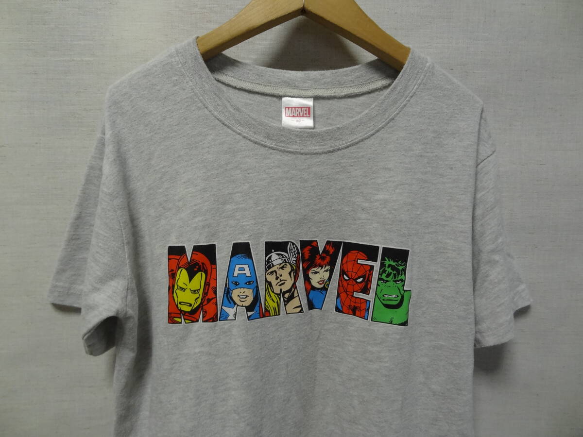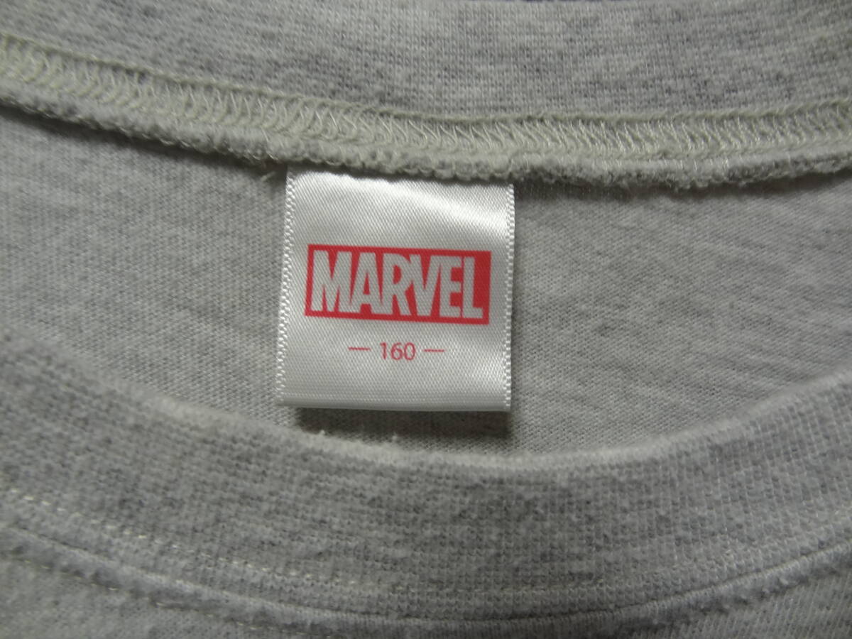 全国送料無料 マーベル MARVEL アベンジャーズ 子供服キッズ男の子 リンガー半袖 杢グレー色Tシャツ 160